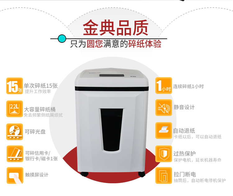 • 商品名称:金典(Golden)GD-9515 碎纸机办公电动 碎纸机段状大功率静音碎纸机