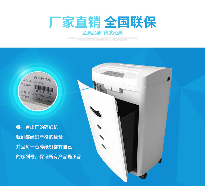 • 商品名称:金典(Golden)GD-9138 碎纸机电动办公碎纸机 粒状家用大功率 静音碎纸机