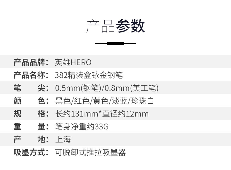 • 商品名称:英雄(HERO)382 铱金钢笔墨水笔明尖 珍珠白