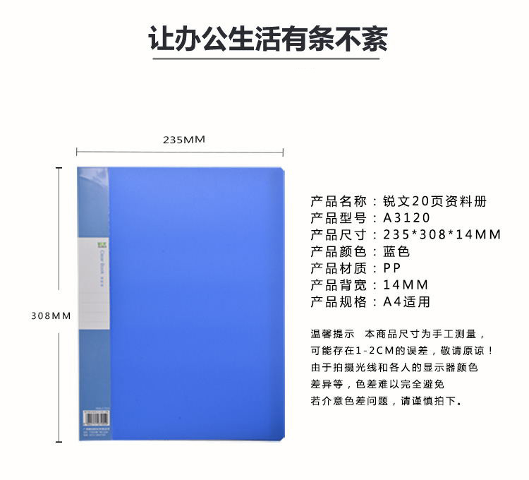 • 商品名称:广博(GuangBo)A3120 A4/20页PP资料册/文件册/档案册/办公用品