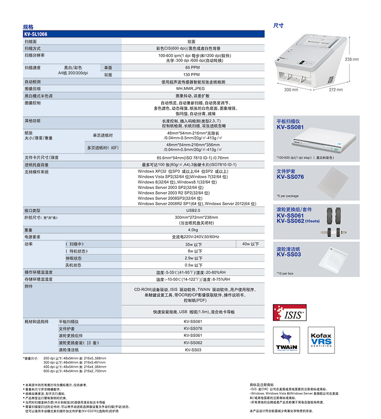 • 商品名称:松下(panasonic) KV-SL1066-CC 高速双面自动馈纸 彩色文档扫描仪