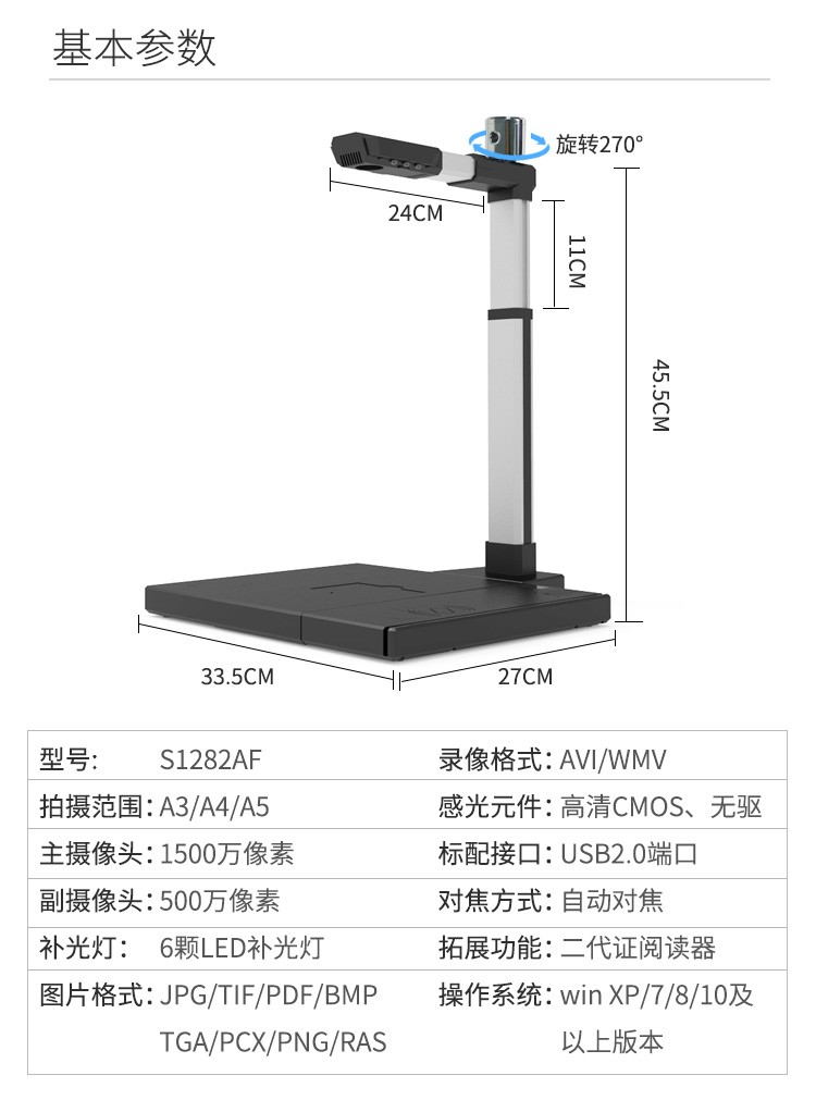 • 商品名称:良田(eloam) S1282AF 高拍仪高速扫描仪 A3幅面 自动对焦 1500万像素