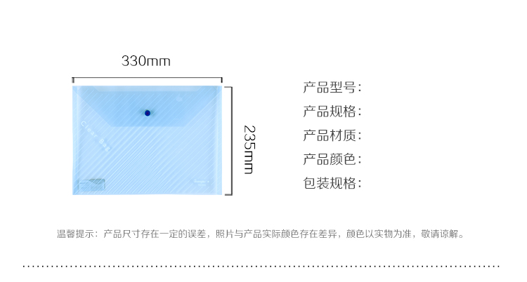 • 商品名称:广博(GuangBo)A6399 加厚透明文件袋/按扣资料袋/办公用品 20只/包 蓝