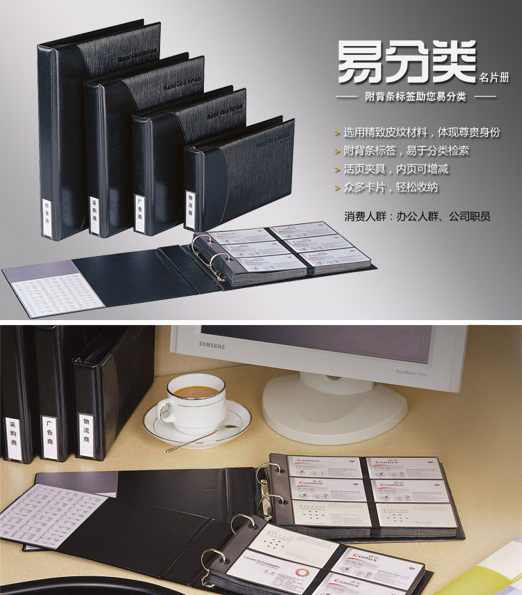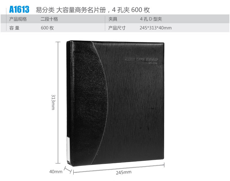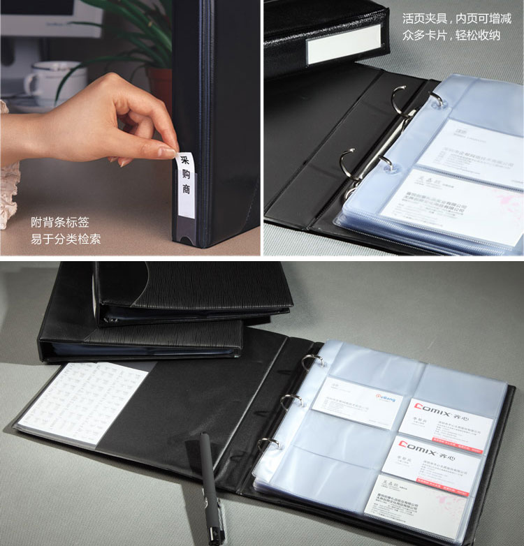 • 商品名称:齐心(Comix) A1613 大容量商务名片册 二段十格 600枚/本 黑色