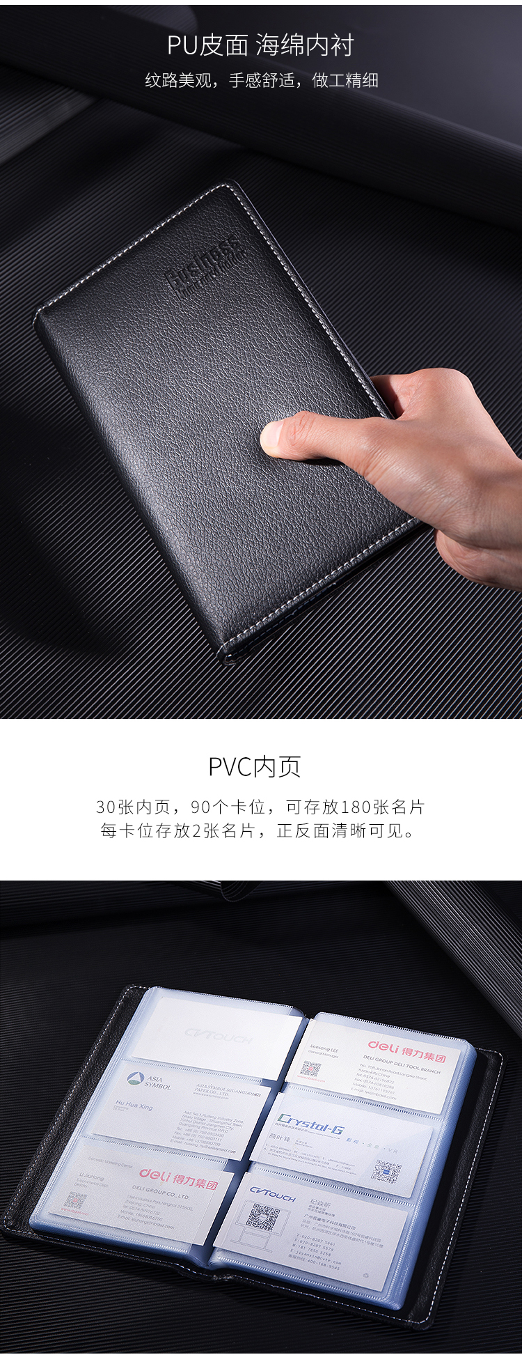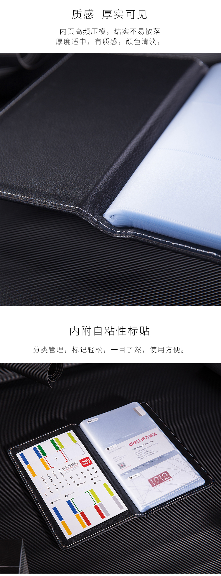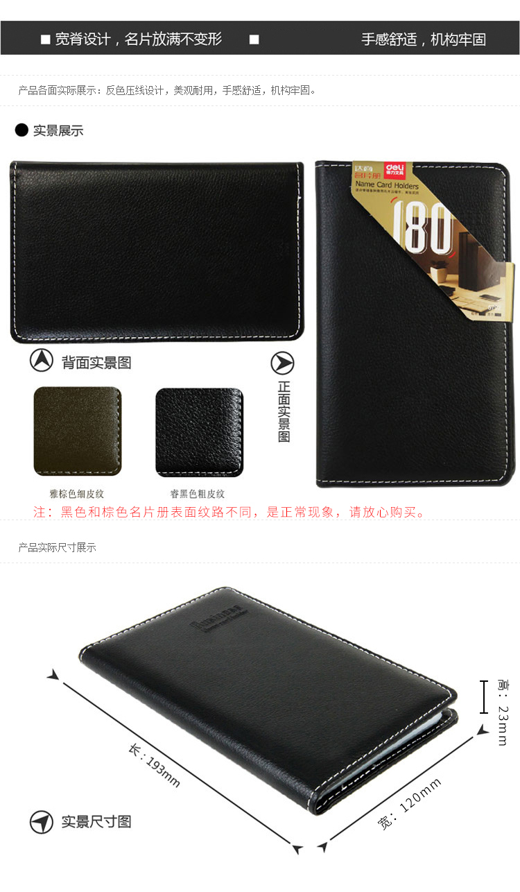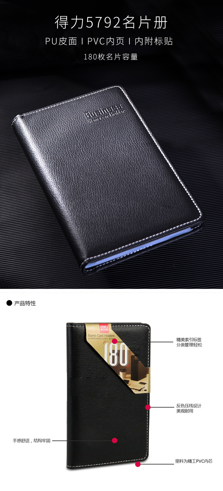 • 商品名称:得力(deli)5792 硬皮摊开式名片册180张/本 颜色随机