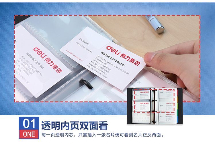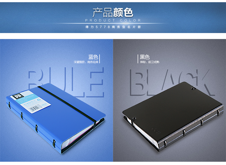 • 商品名称:得力(deli)5778 活页带捆绳名片册商务名片夹180枚/本 颜色随机