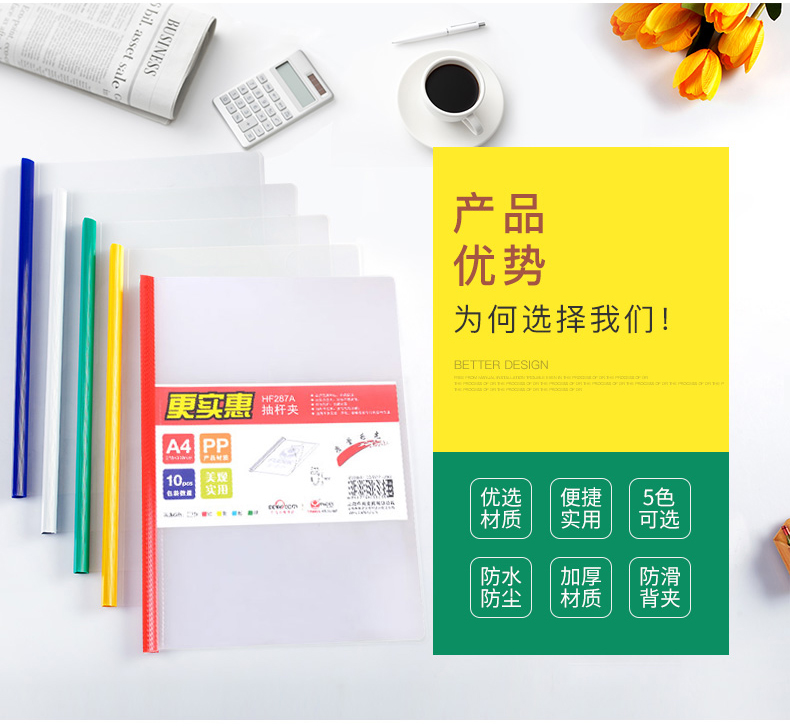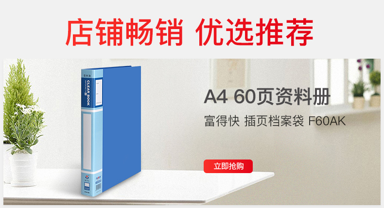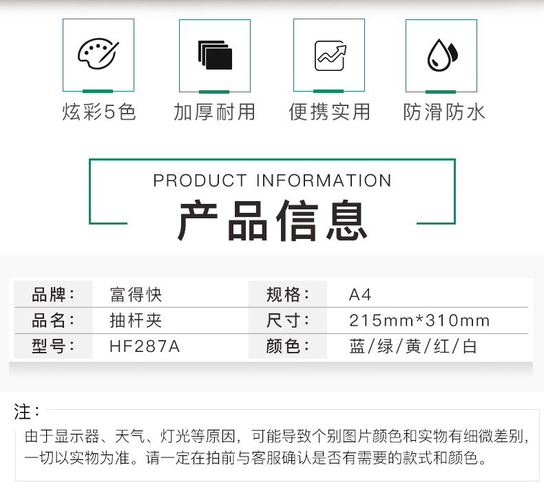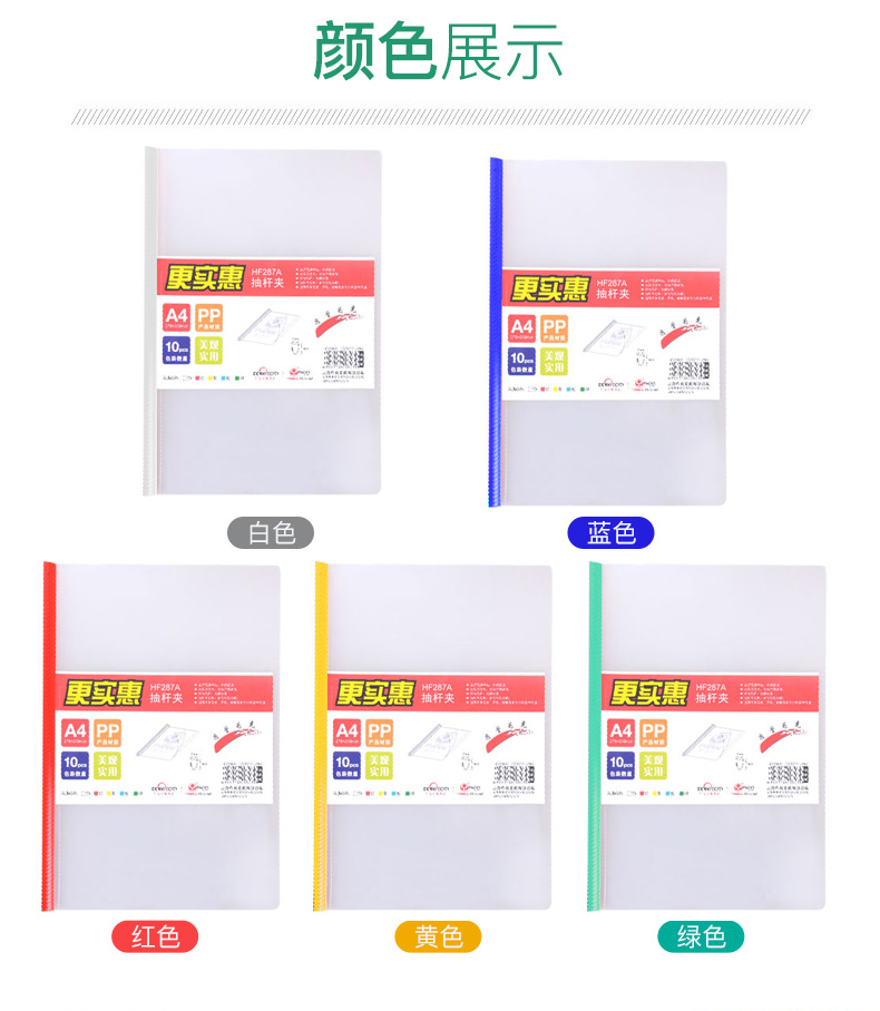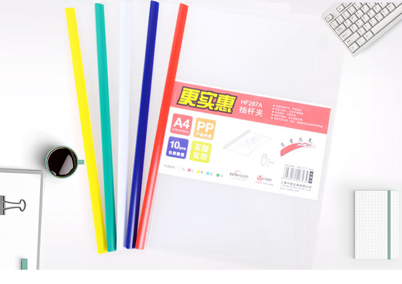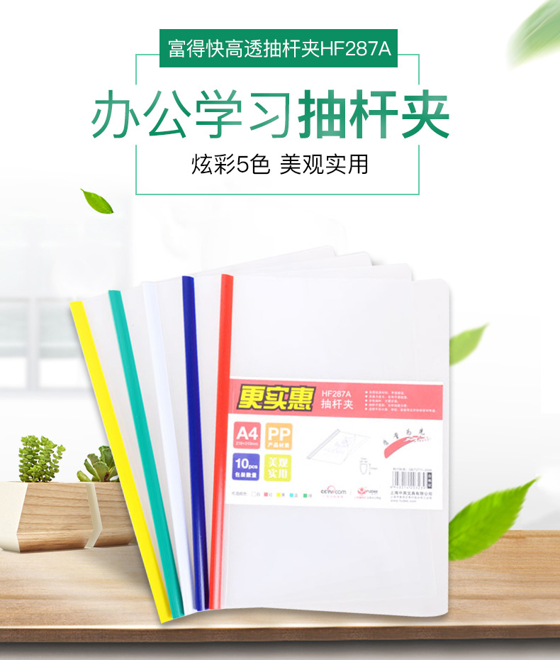 • 商品名称:富得快(FUDEKUAI) 287A A4透明抽杆夹/拉杆夹文件夹12只/包 (A4透明文件夹- 5色混装)