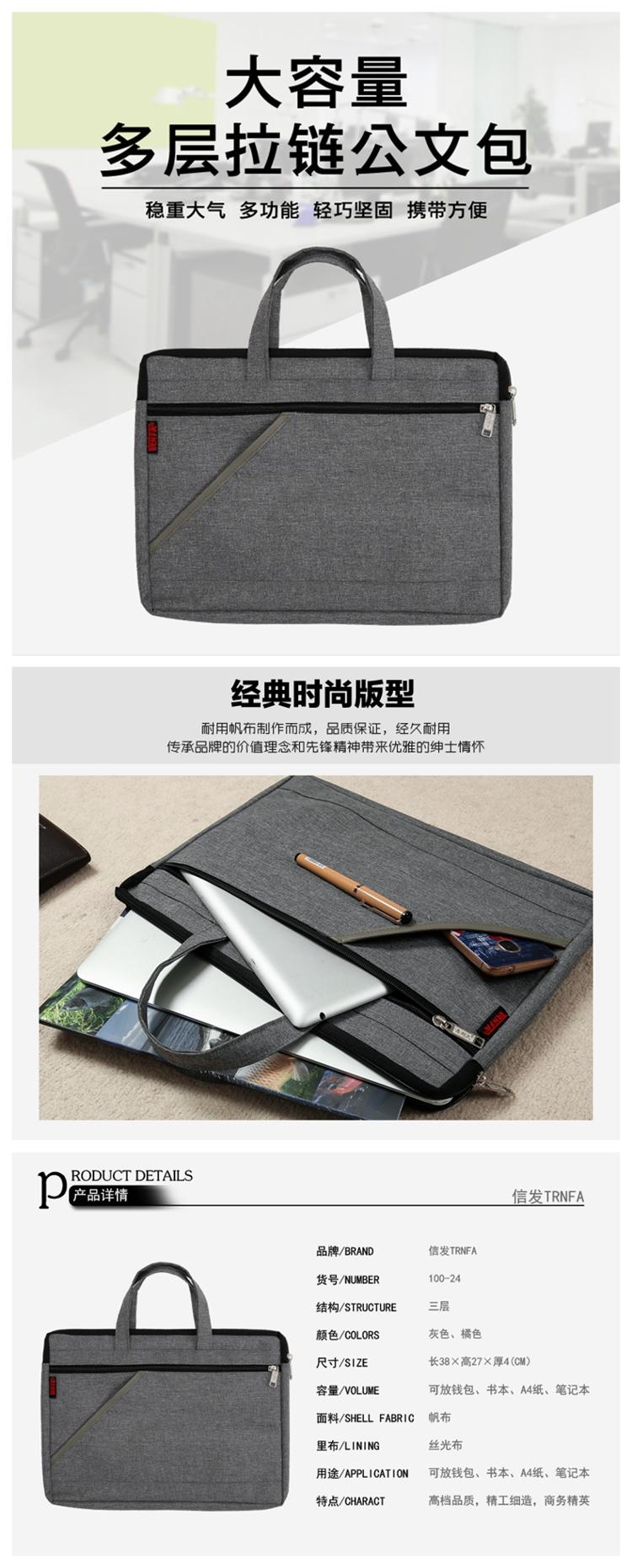 • 商品名称:信发(TRNFA)TN-100-24 帆布多层拉链文件袋手提电脑包多功能会议公文包 灰色