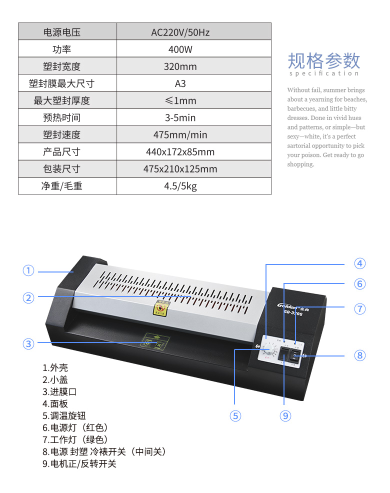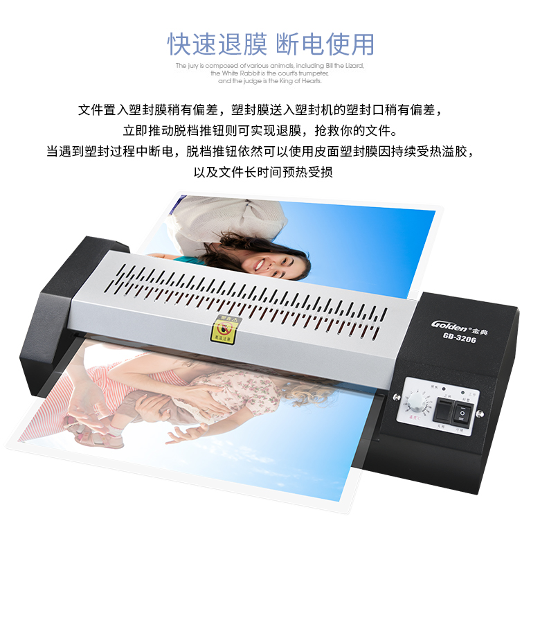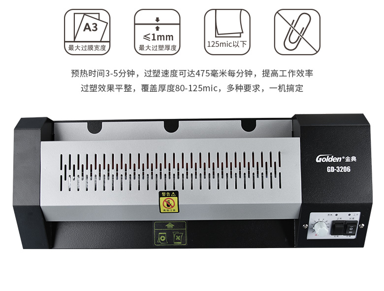 • 商品名称:金典(Golden)GD-3206 塑封机 A3照片过塑机 封装机 自动过塑机过胶机