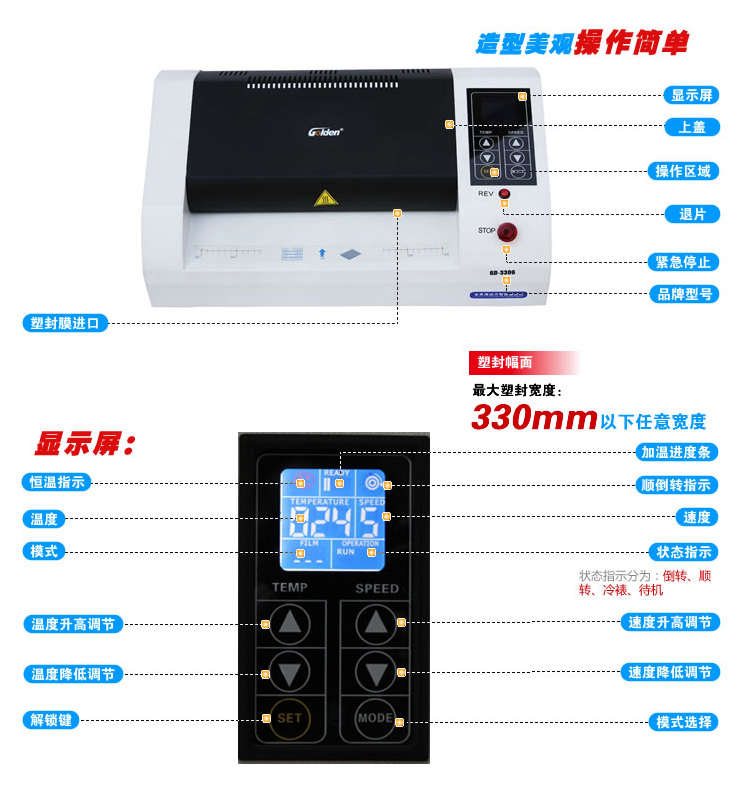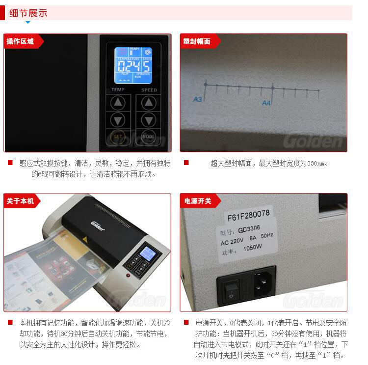 • 商品名称:金典(Golden)GD-3306 塑封机 过塑机相片过胶机文件覆膜机