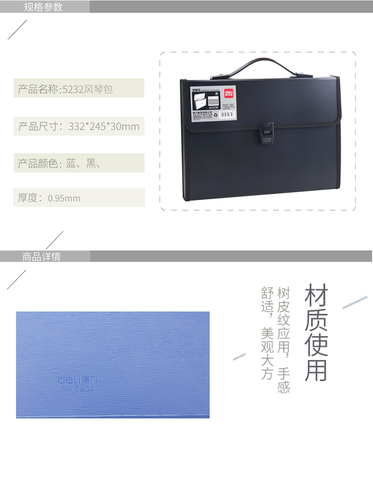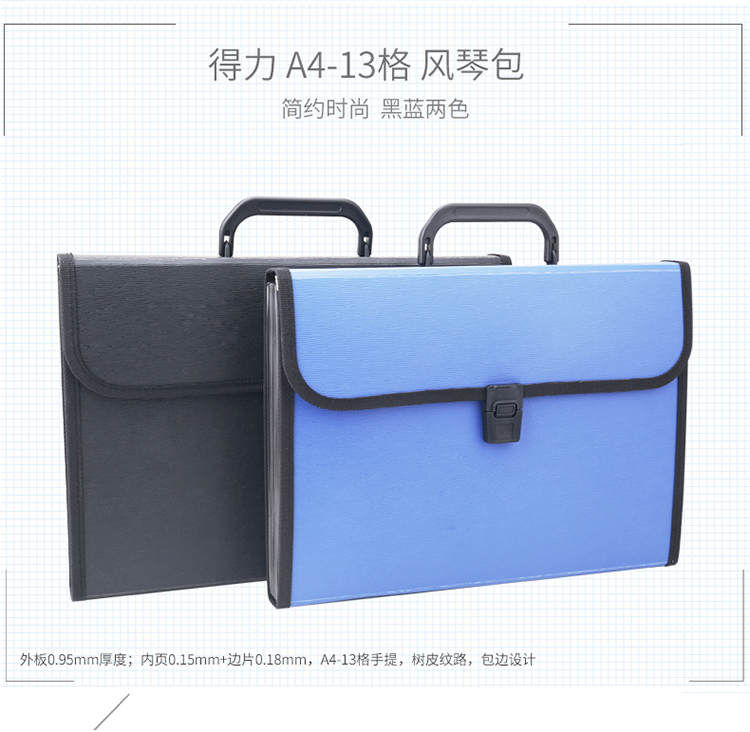 • 商品名称:得力(deli)5232 A4办公手提风琴包资料包文件包 13格 蓝色
