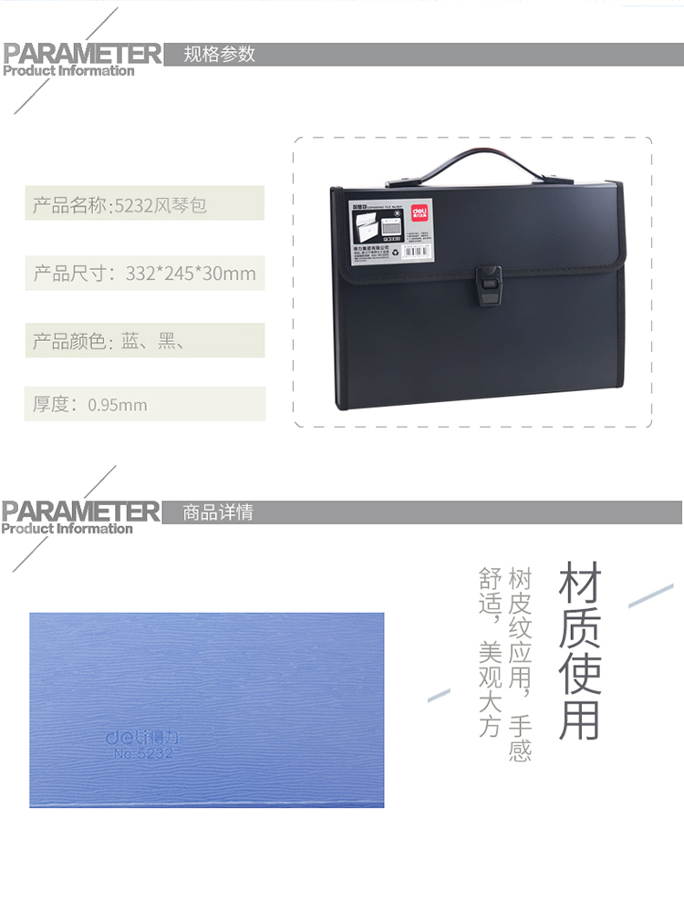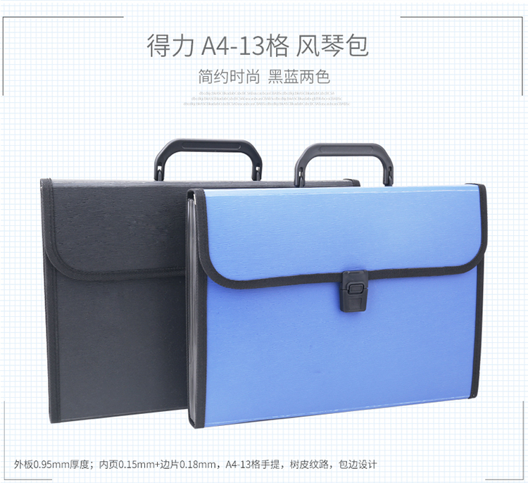 • 商品名称:得力(deli)5232 A4办公手提风琴包资料包文件包 13格 黑色