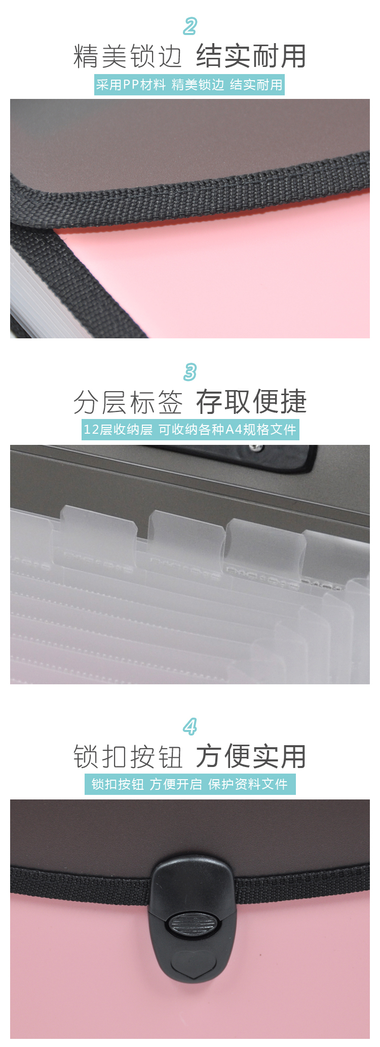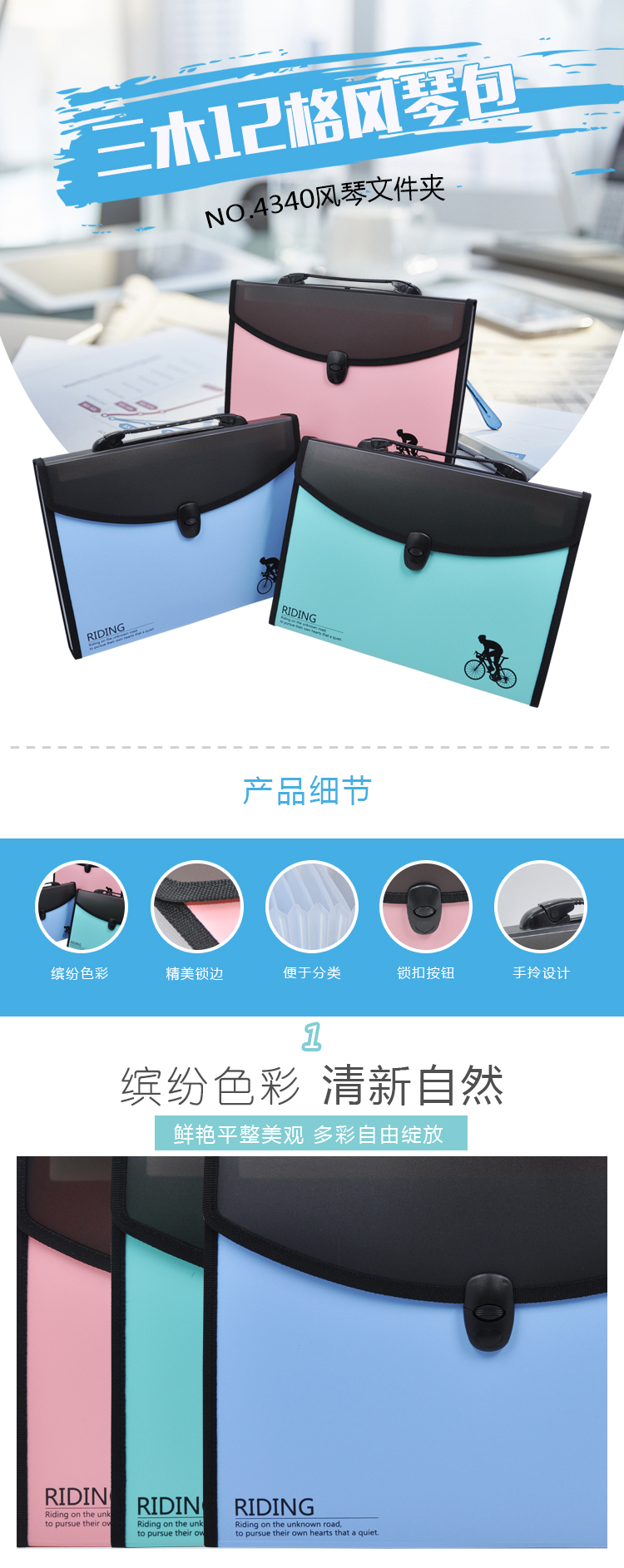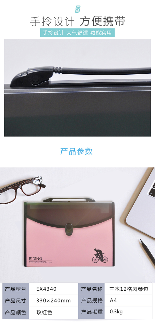 • 商品名称:三木(SUNWOOD)EX4340 A4商务型手提式风琴包/资料包/文件包 12格 玫红色