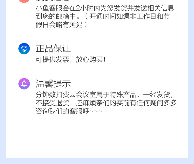 • 商品名称:小鱼易连 云视频会议软件远程网络系统高清视频会议 1000云会议室充值卡