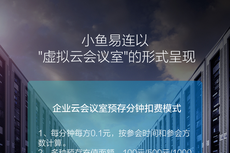 小鱼易连 云视频会议软件远程网络系统高清视频会议 1000云会议室充值卡