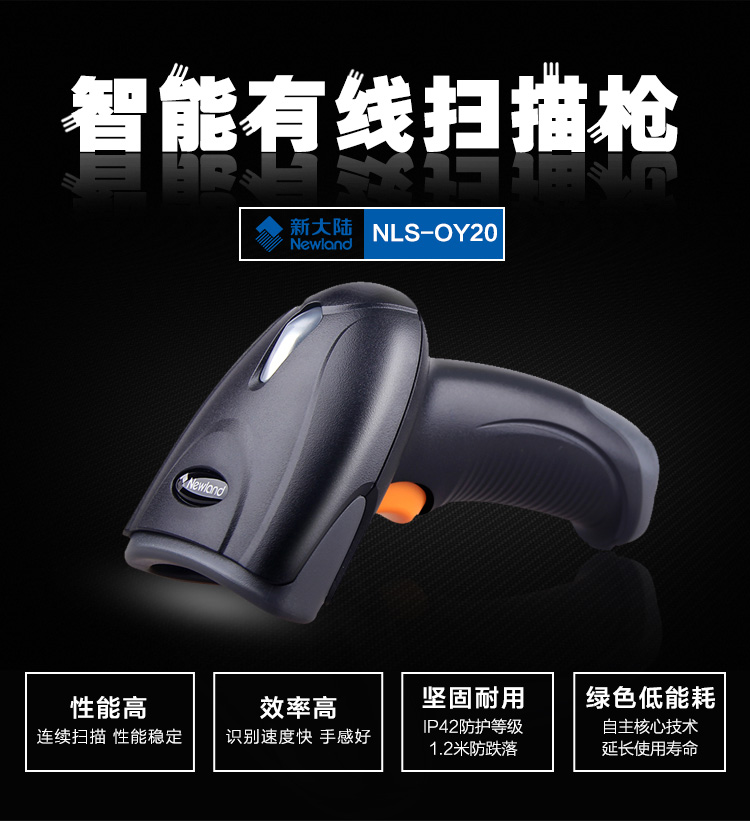 • 商品名称:新大陆(Newland) NLS-OY20 二维码扫描枪 条码扫码枪手机微信支付宝扫码器 有线超市快递扫描 USB接口