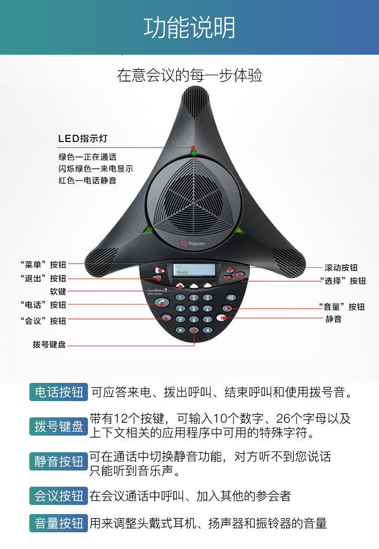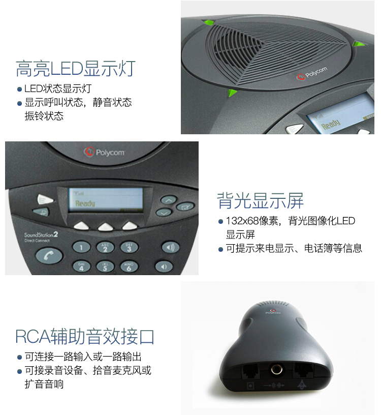 • 商品名称:宝利通(POLYCOM)SoundStation 2 标准型会议电话机八爪鱼 音频视频会议系统一体机 全向麦克风终端