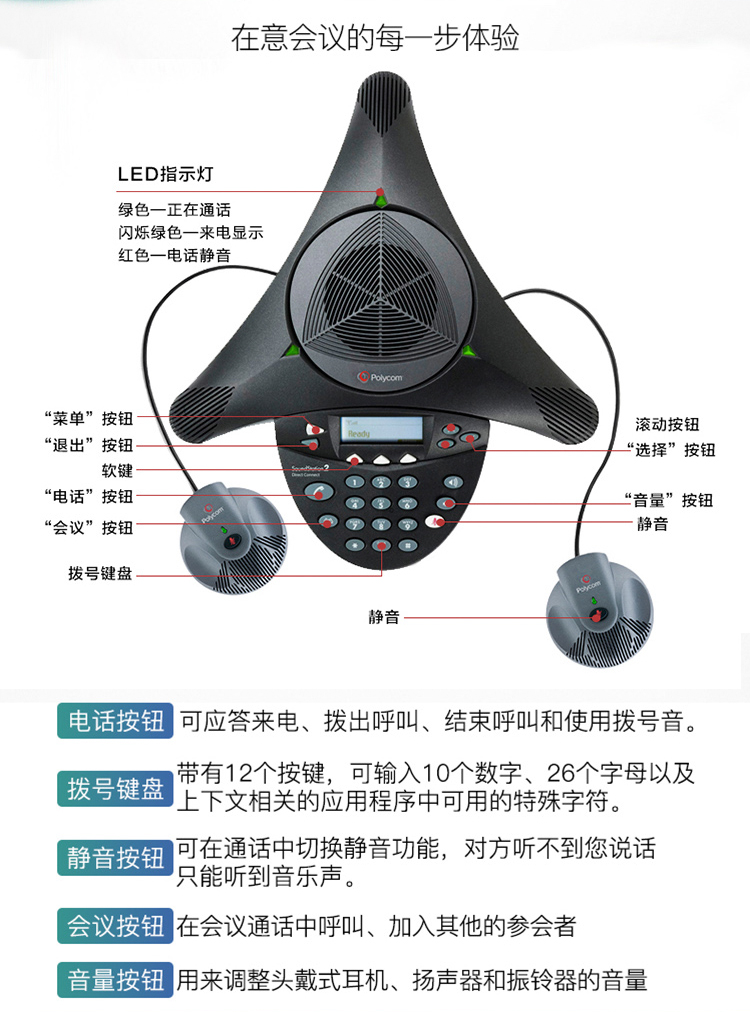 • 商品名称:宝利通(Polycom)SoundStation 2EX扩展型 会议电话机 全向麦克风一体机 八爪鱼电话机座机音视频终会议终端