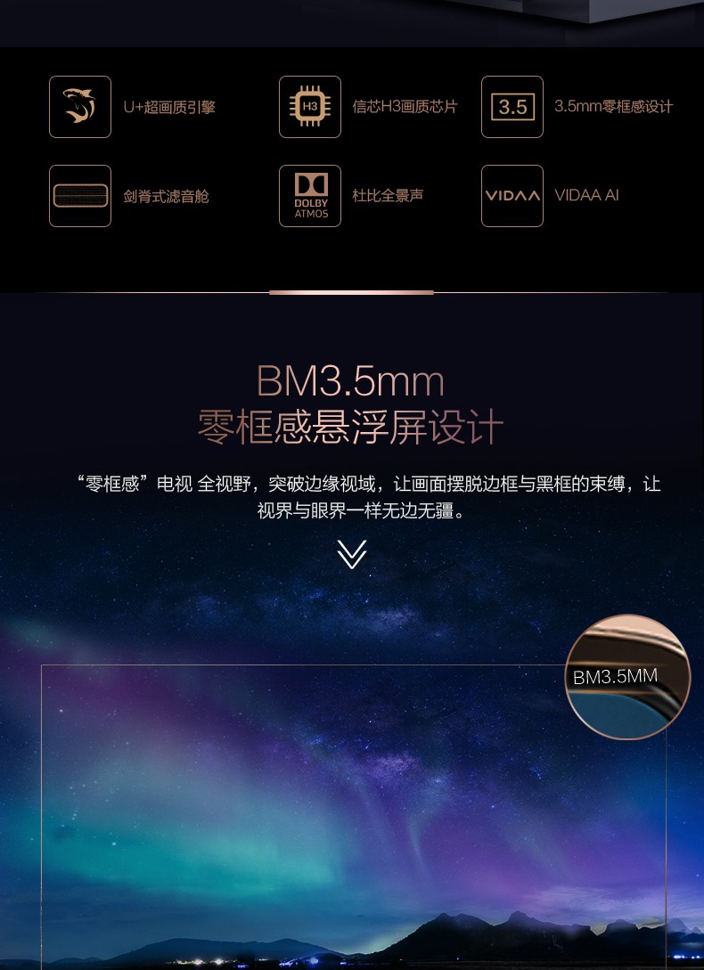 • 商品名称:海信(Hisense)HZ85U8E 85英寸 ULED超画质 全视野悬浮屏 杜比全景声 电视机