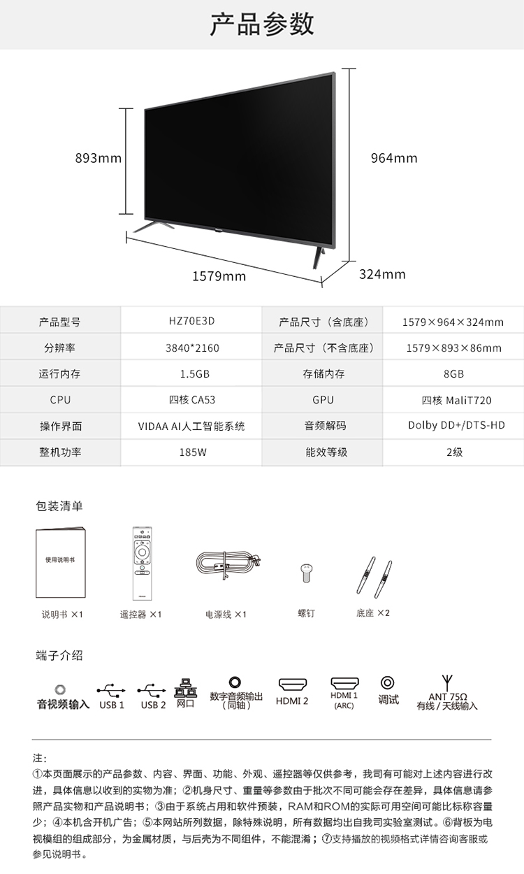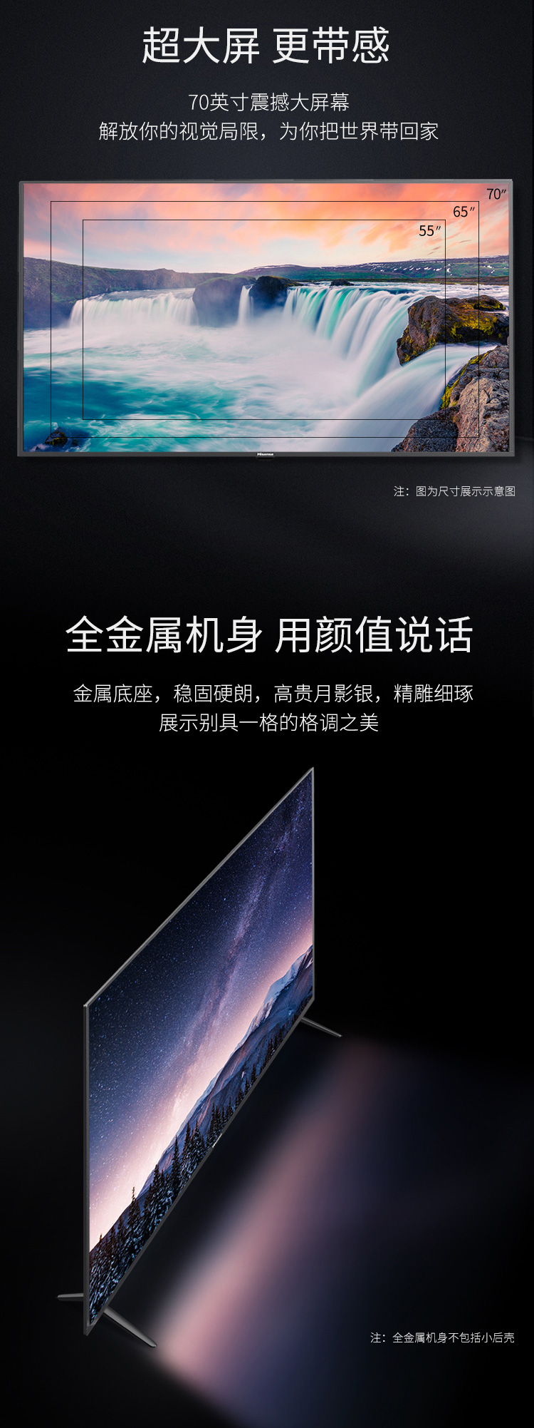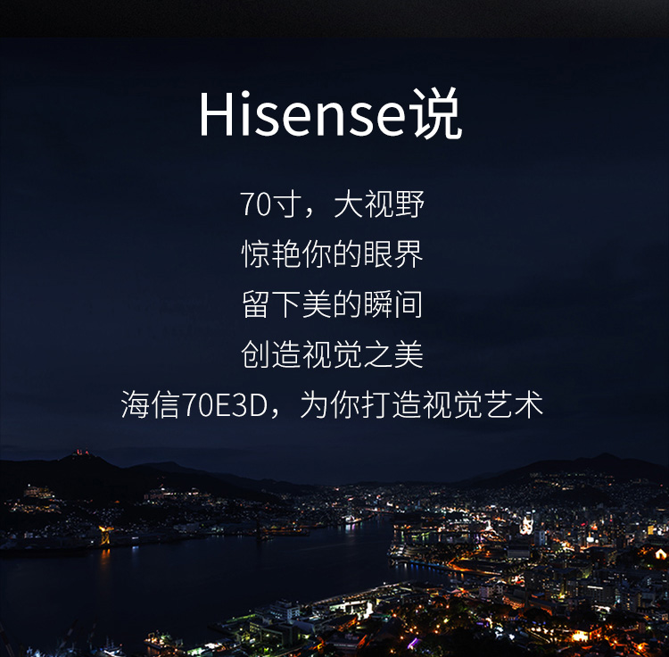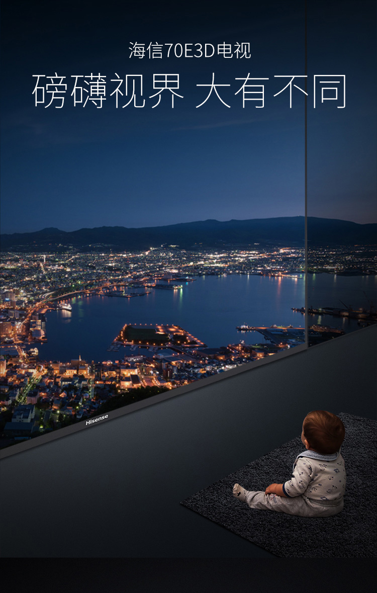• 商品名称:海信(Hisense) HZ70E3D 70英寸液晶电视 4K超高清HDR 人工智能 大屏智慧语音