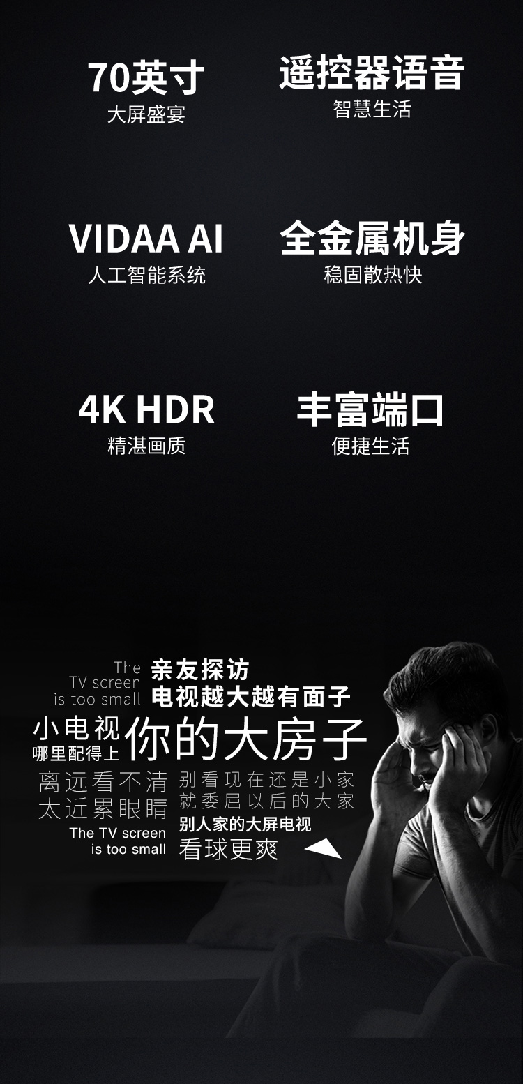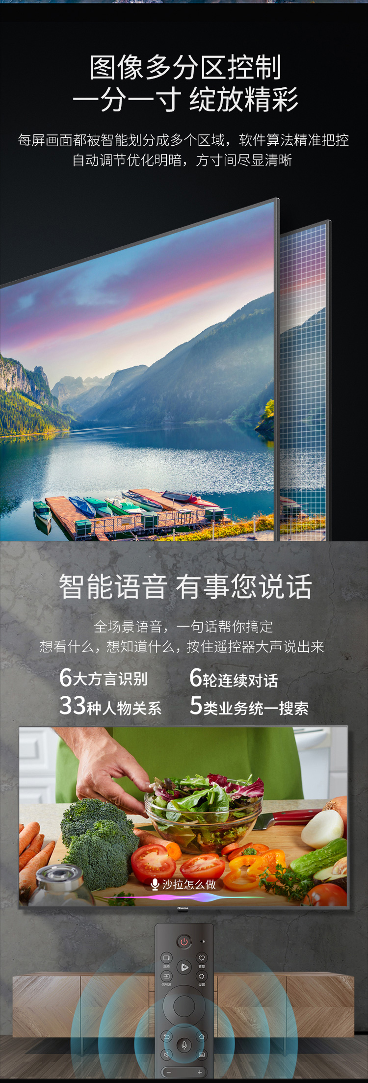 海信(Hisense) HZ70E3D 70英寸液晶电视 4K超高清HDR 人工智能 大屏智慧语音