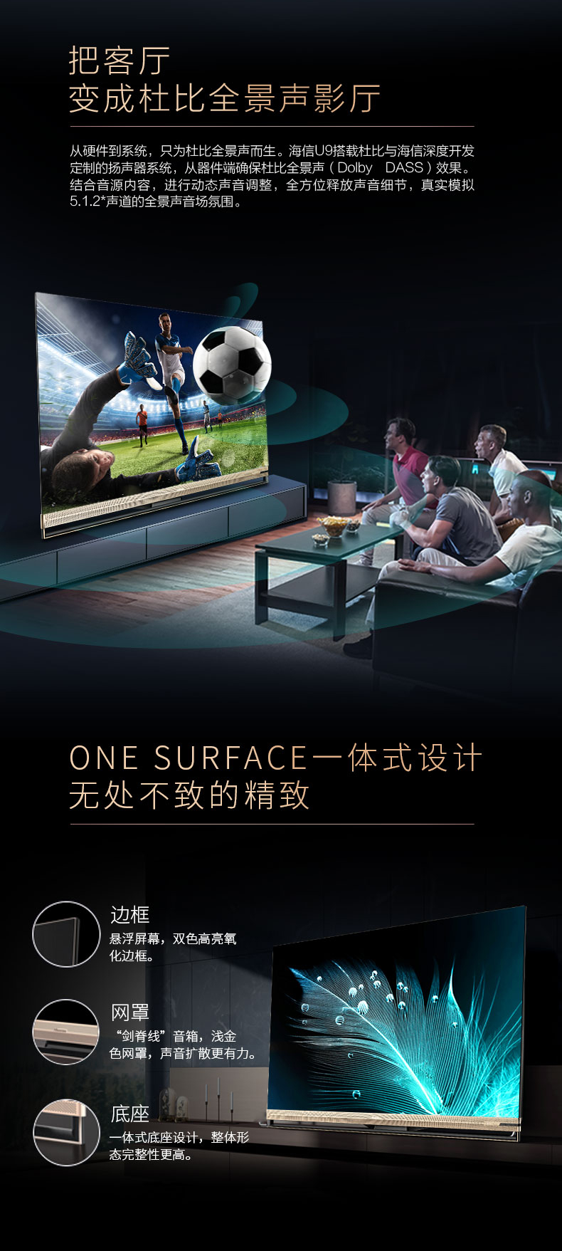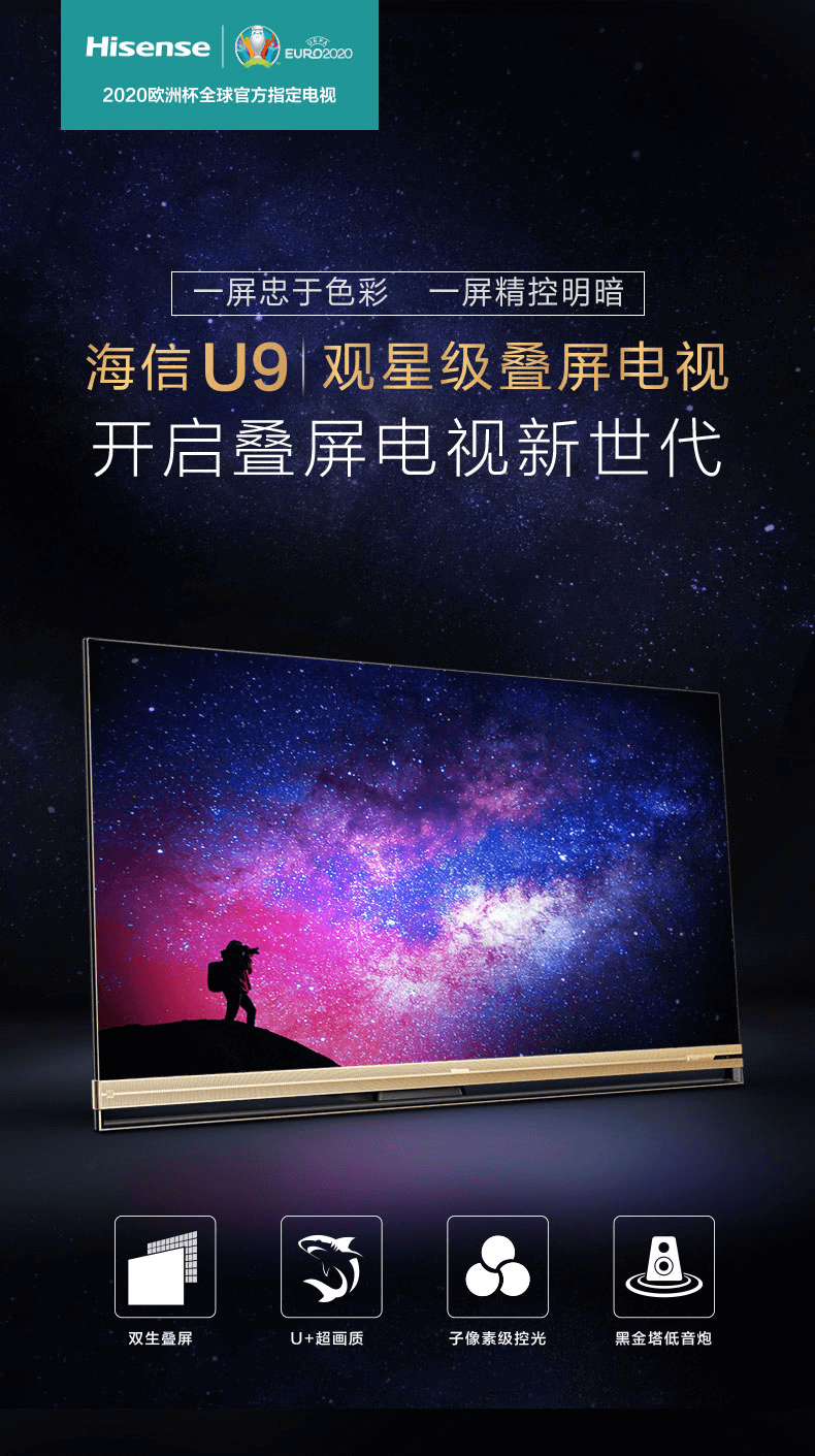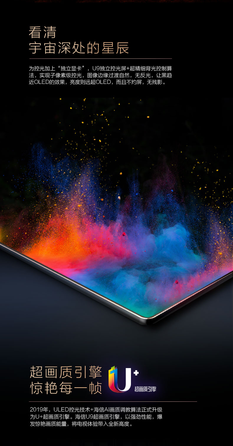 海信(Hisense)HZ65U9E 65英寸液晶电视 超高清4K HDR AI人工智能叠屏