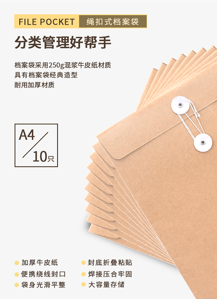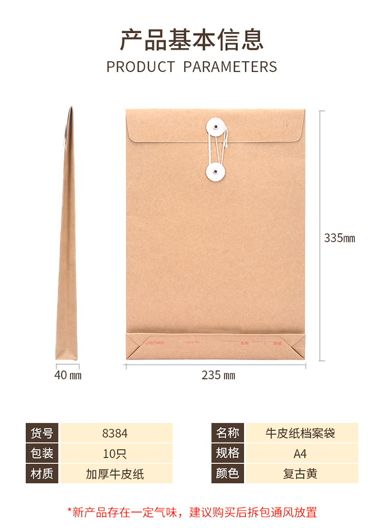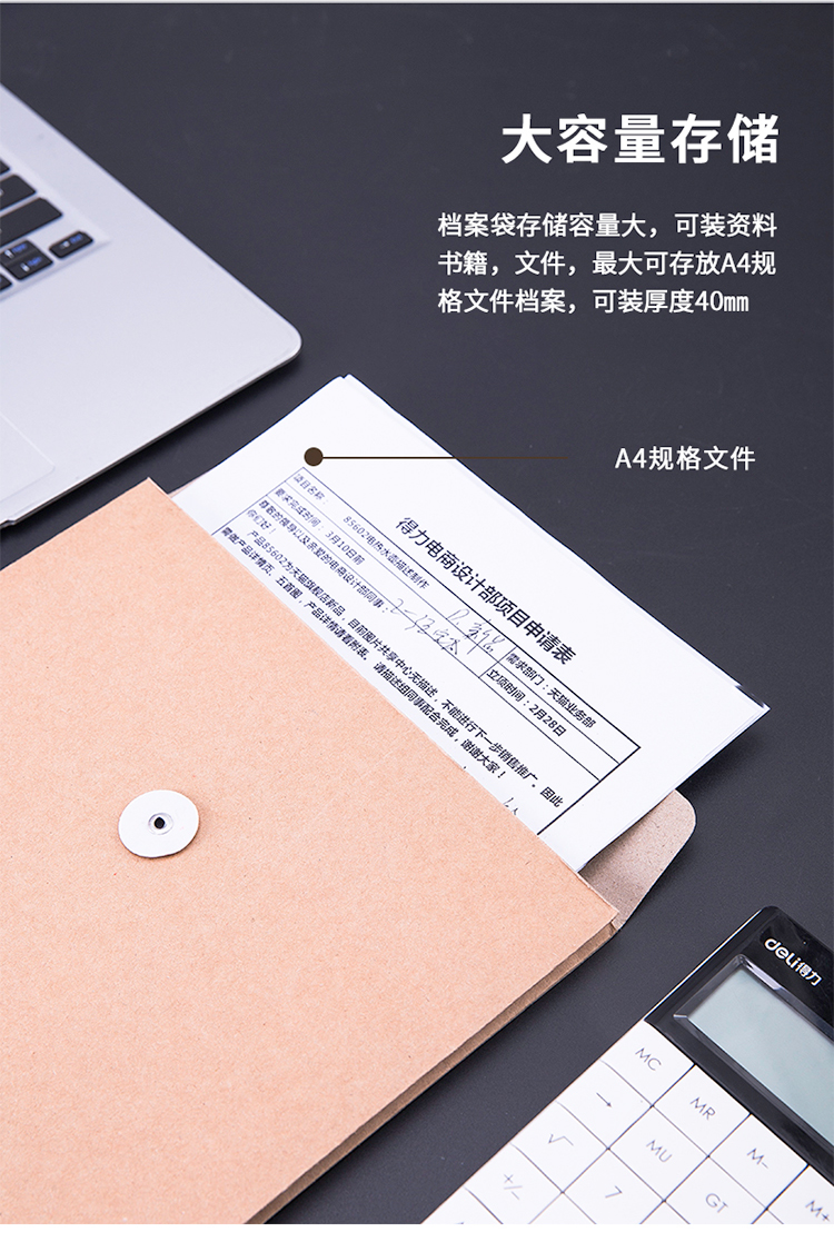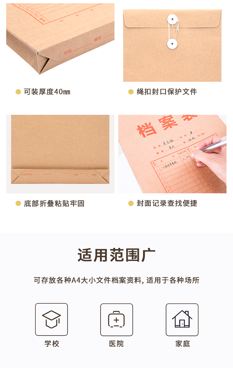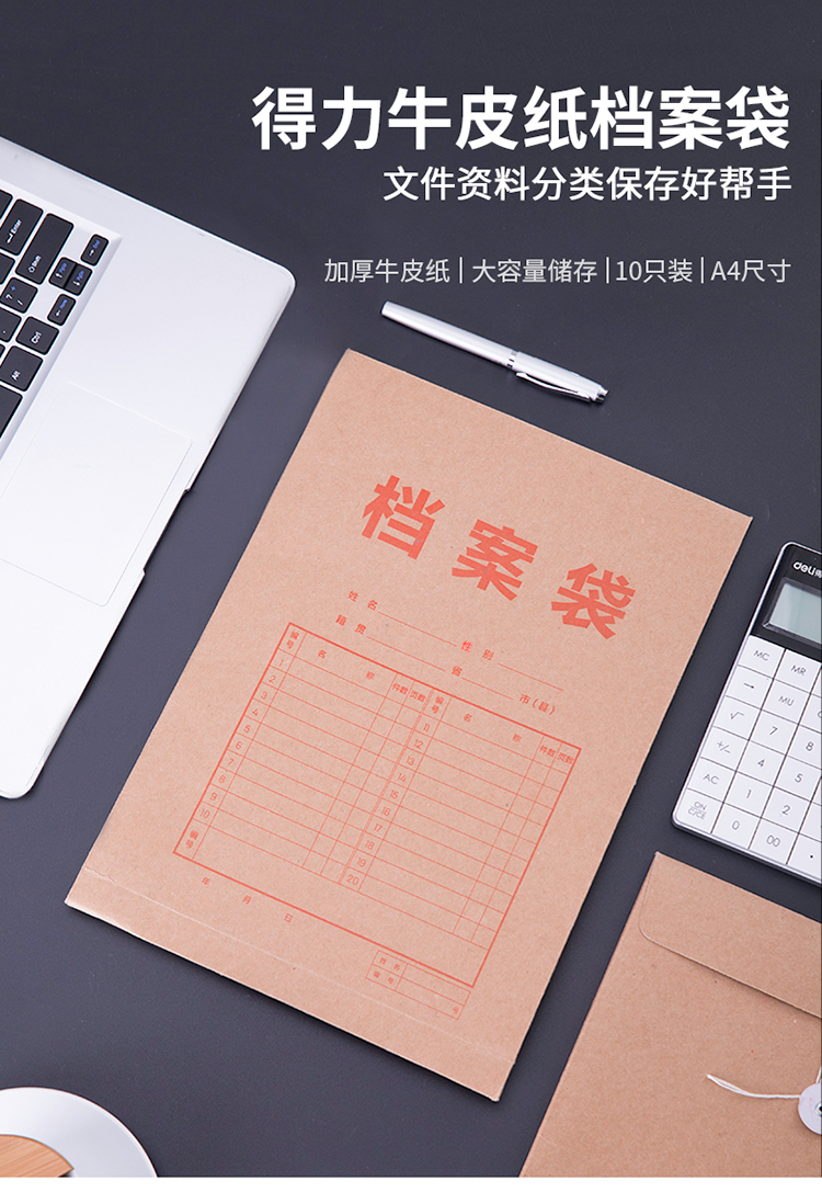 • 商品名称:得力(deli) 8384 A4加厚牛皮纸档案袋 250g 侧宽4cm 文件资料袋