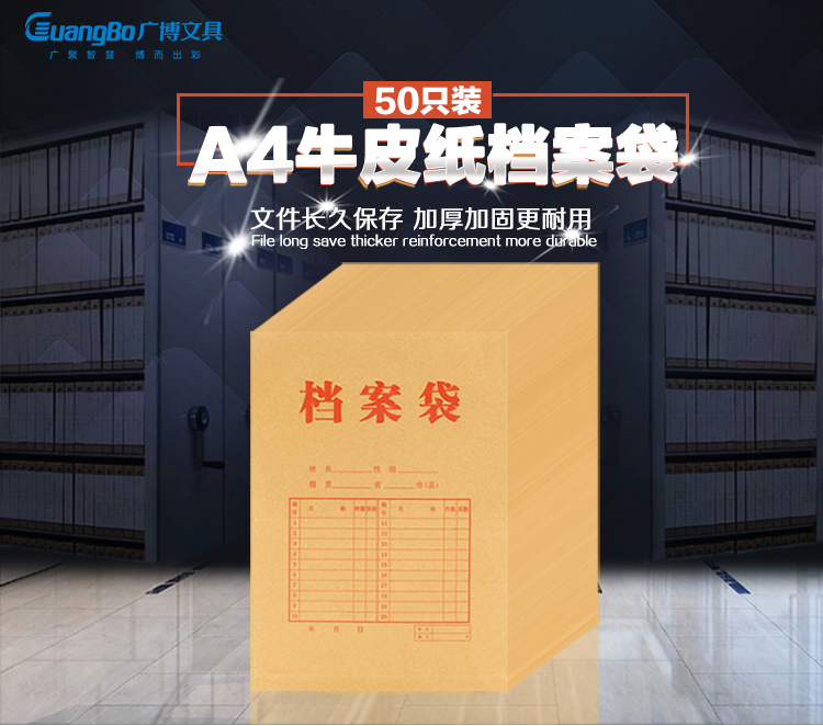 • 商品名称:广博(GuangBo)EN-12 A4加厚牛皮纸档案袋/资料文件袋170g 3cm