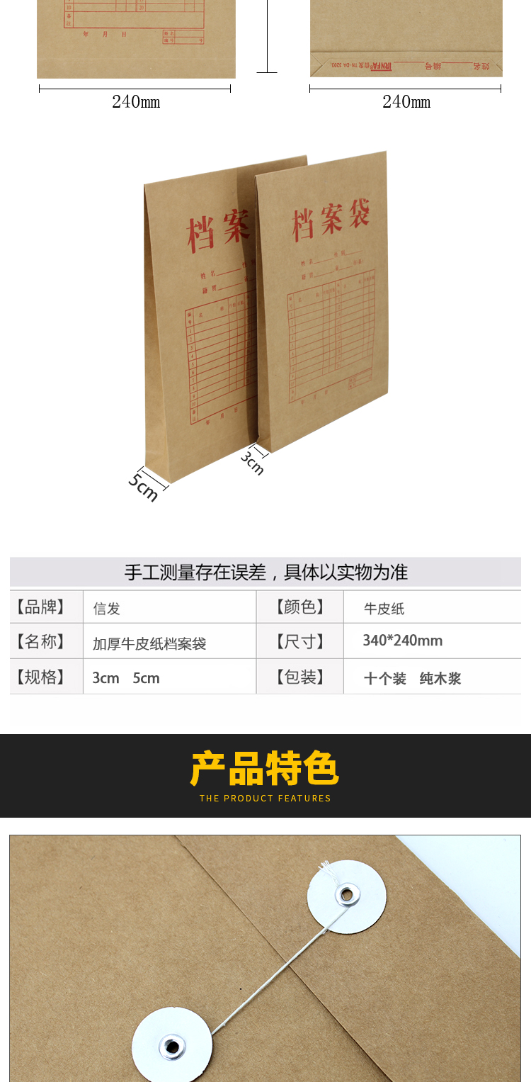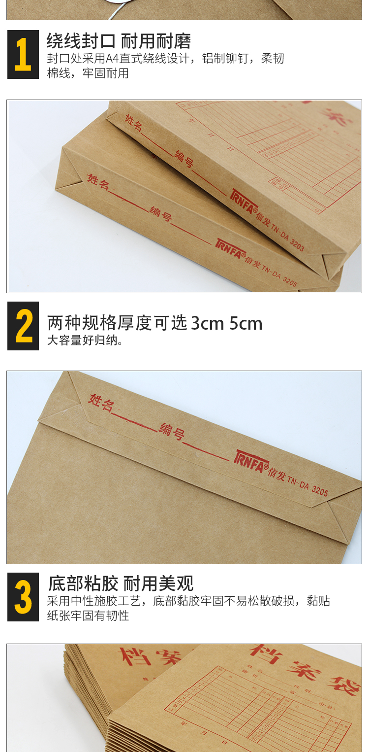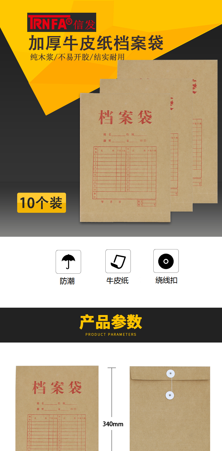• 商品名称:信发(TRNFA) TN-DA3203 A4牛皮纸档案袋/纯木浆文件袋 加厚180g标书合同资料袋 10个/包