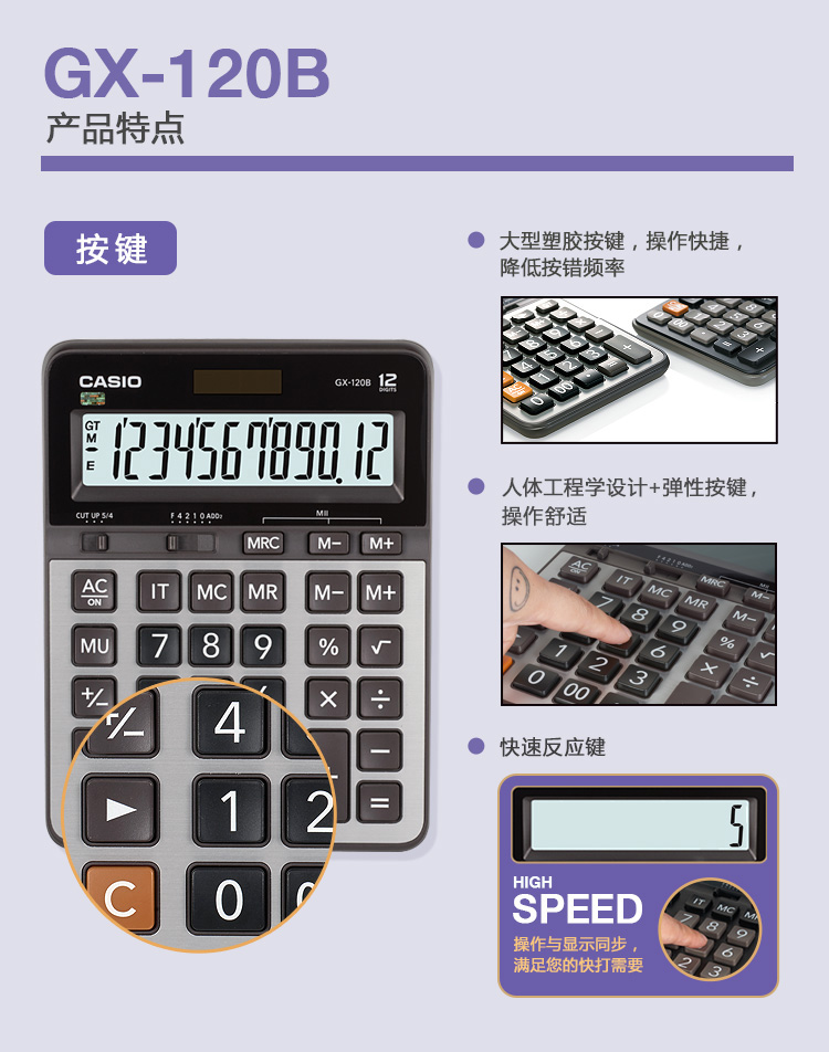 • 商品名称:卡西欧(CASIO)GX-120B 商务计算器 超大型机 灰色 GX-120S升级款