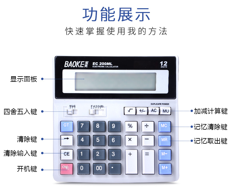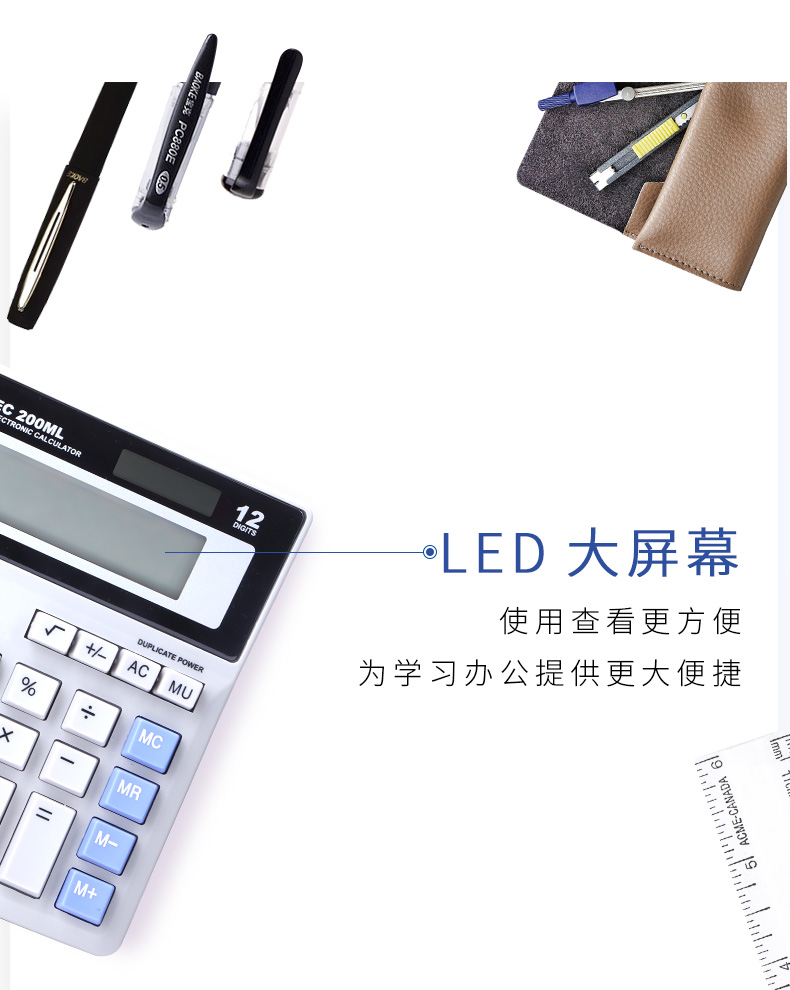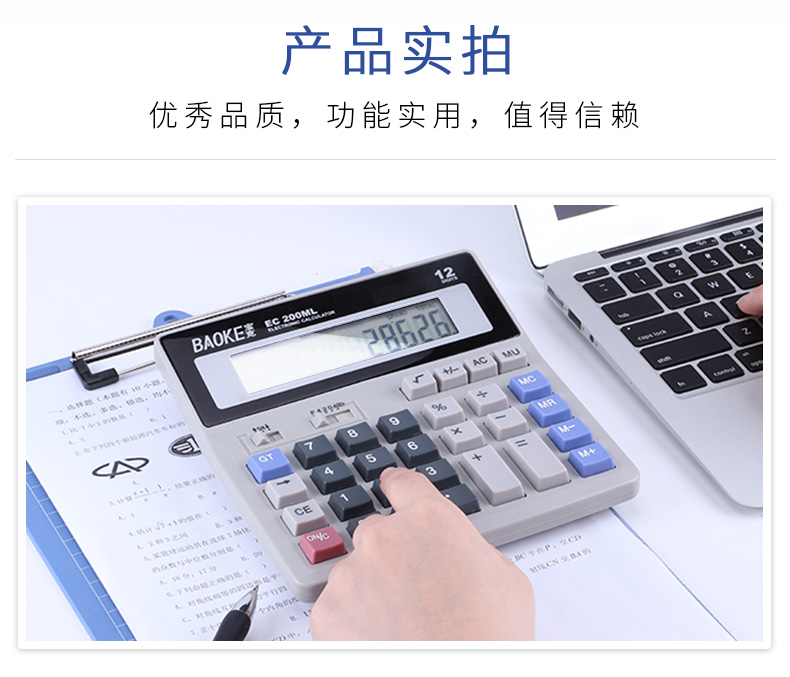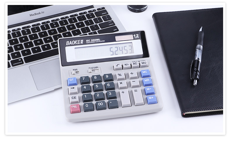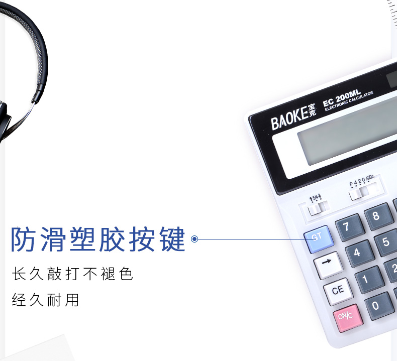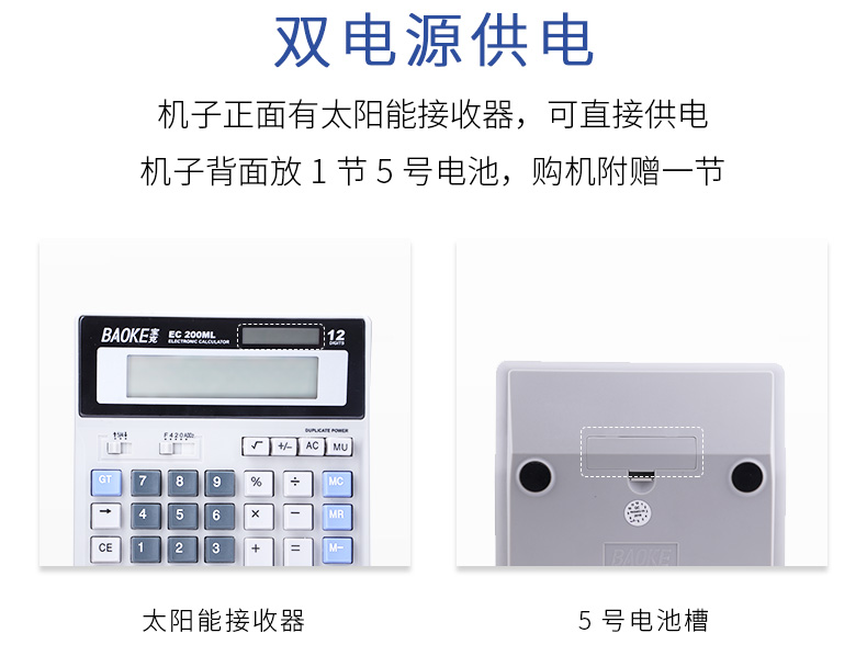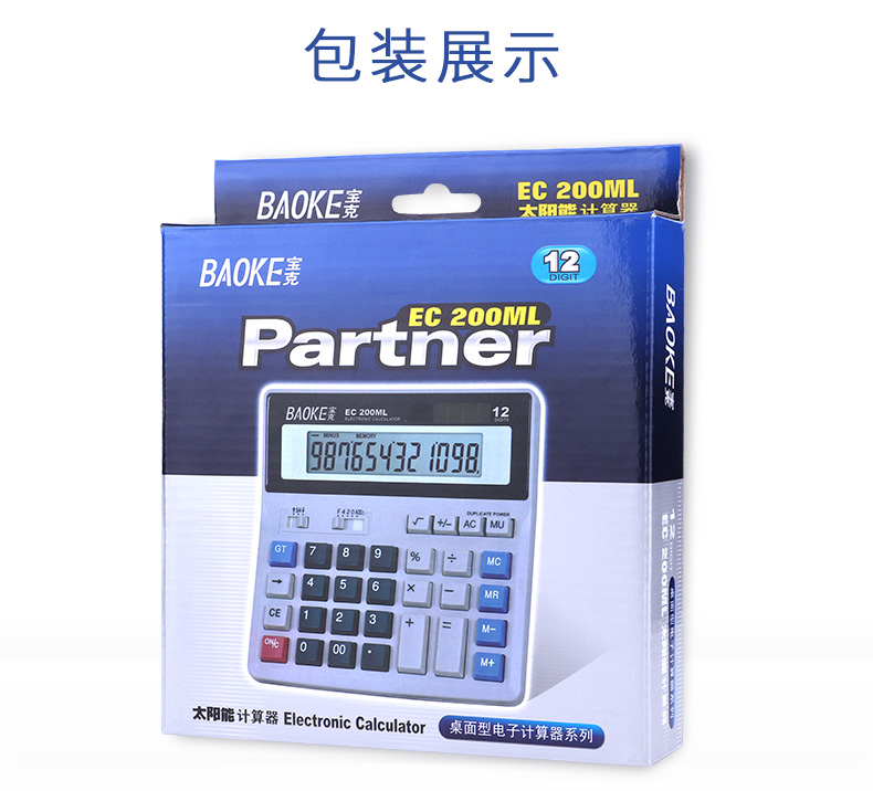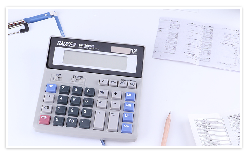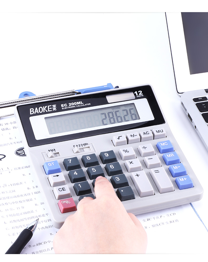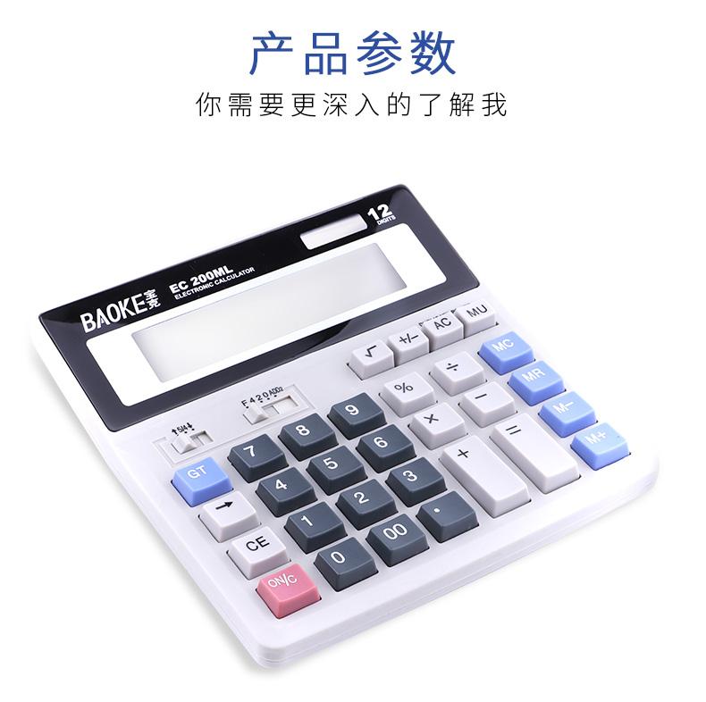 • 商品名称:宝克(BAOKE) EC200ML 12位大屏横式计算机 双电源电脑按键计算器 财务及银行人员适用