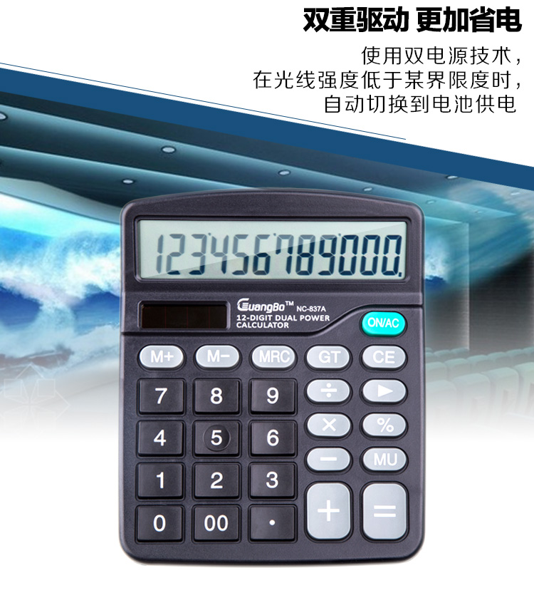 广博(GuangBo)NC-837A 12位大屏幕太阳能计算器桌面计算机