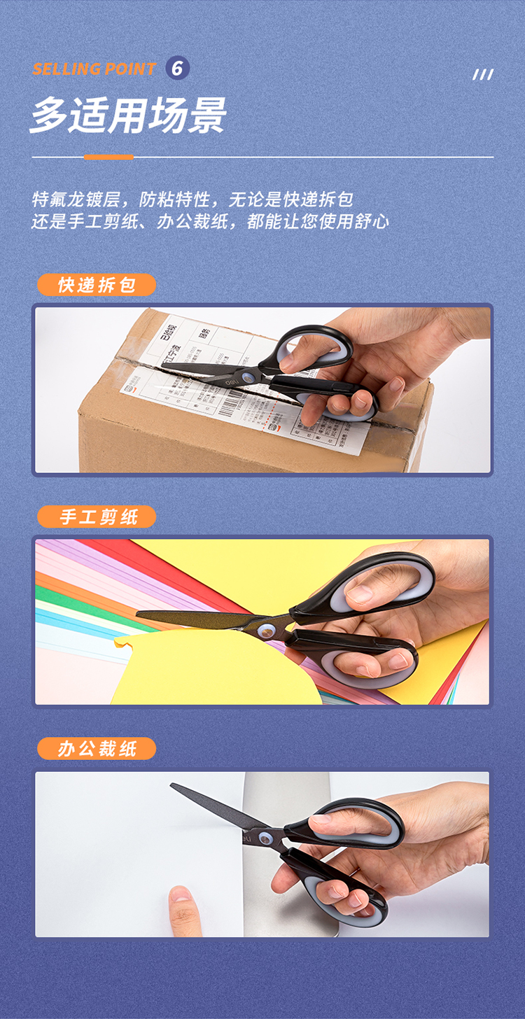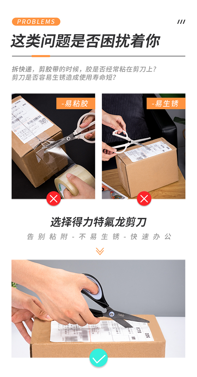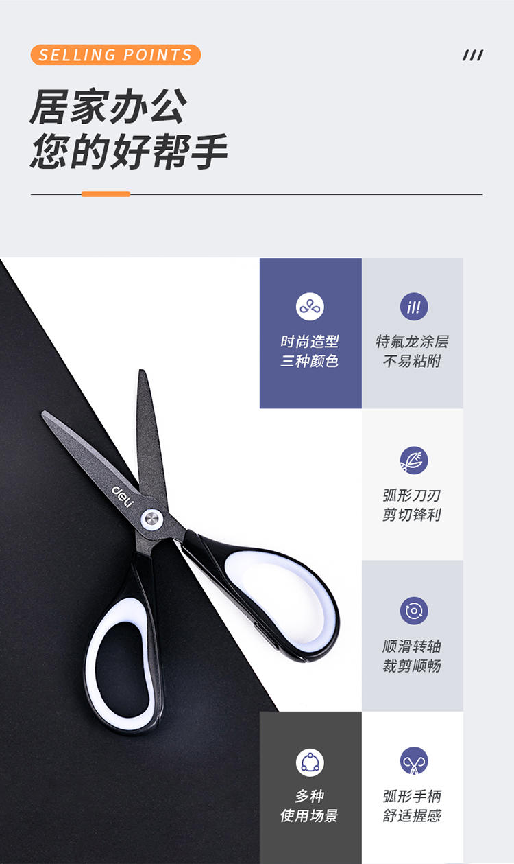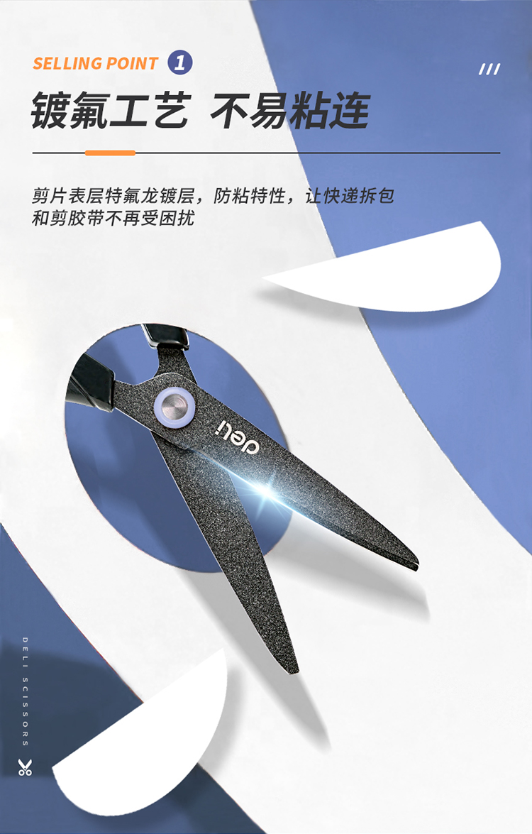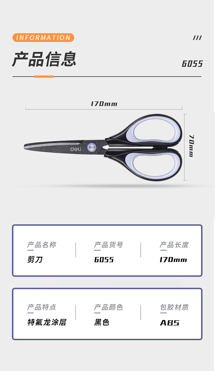 • 商品名称:得力(deli) 6055 剪刀 特氟龙材质防粘不锈钢剪刀 黑色