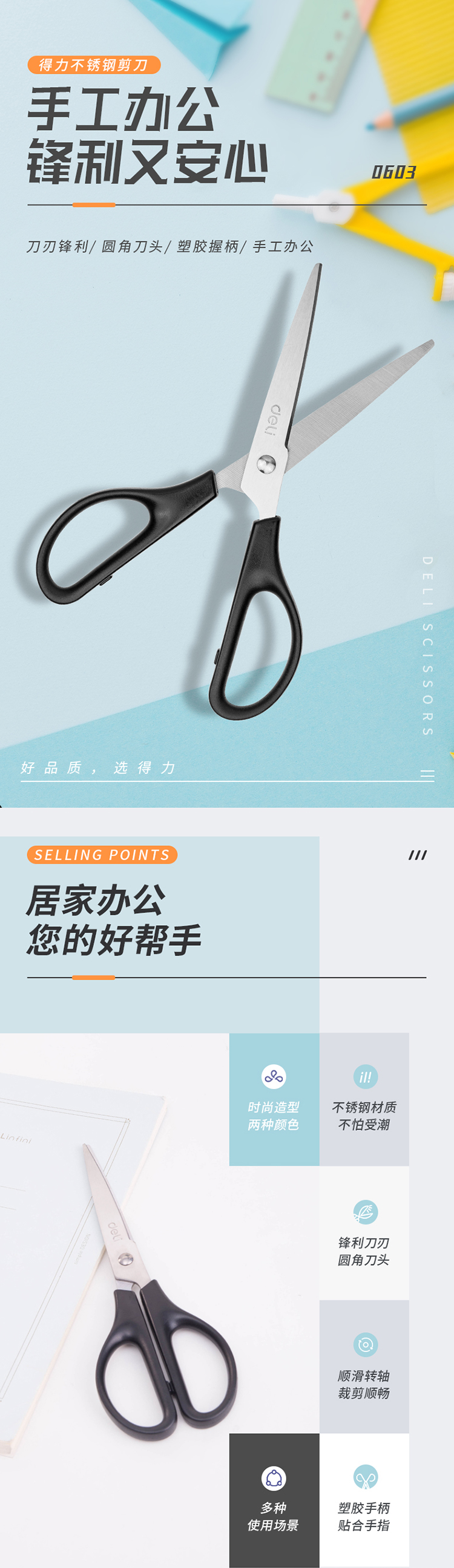 • 商品名称:得力(deli) 0603 170mm办公家用生活剪刀 办公用品 (170mm中号剪刀-黑色)