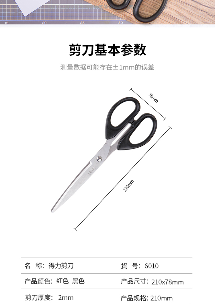• 商品名称:得力(deli) 6010 剪刀 210mm办公家用生活剪刀 颜色随机