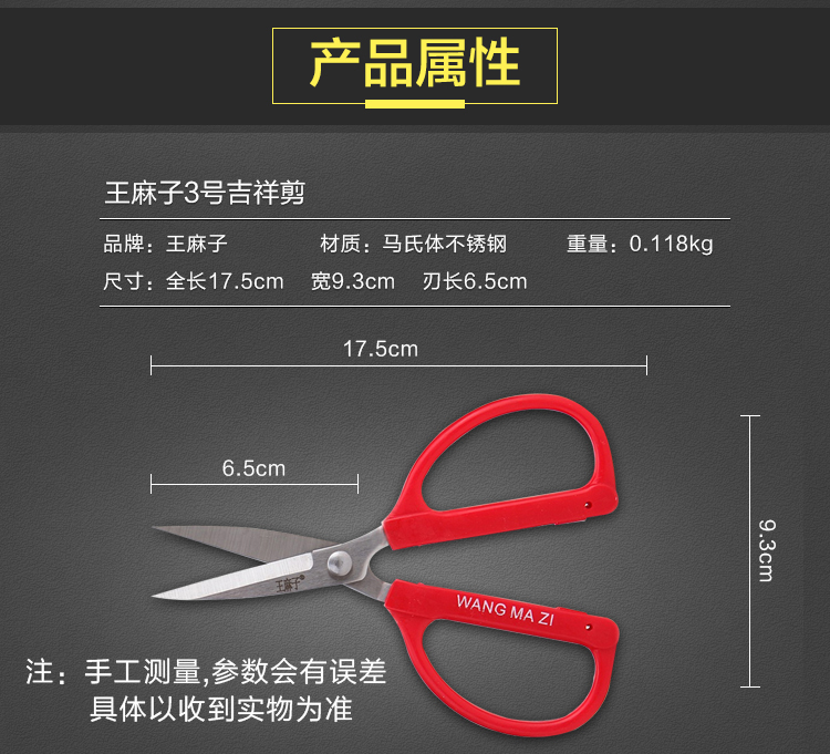 • 商品名称:王麻子 JC33 3号吉祥柄剪刀 办公家用厨房剪子