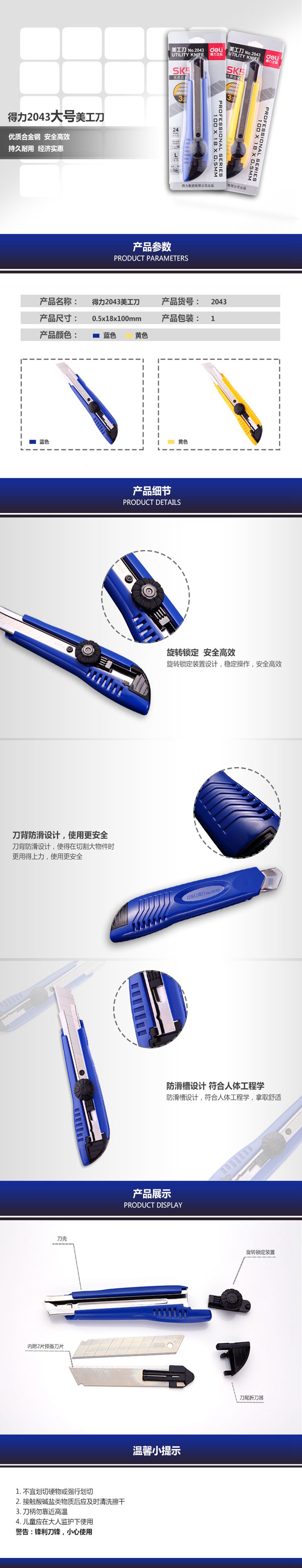 • 商品名称:得力(deli) 2043 18mm大号美工刀 旋转锁定裁纸刀/切纸刀 (黄色2043)