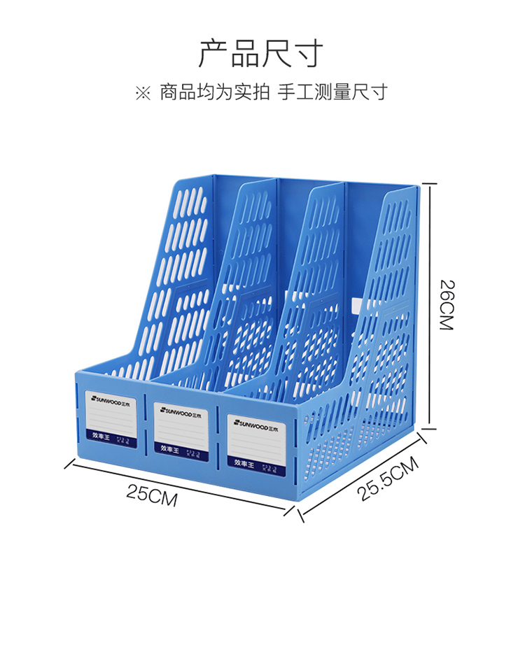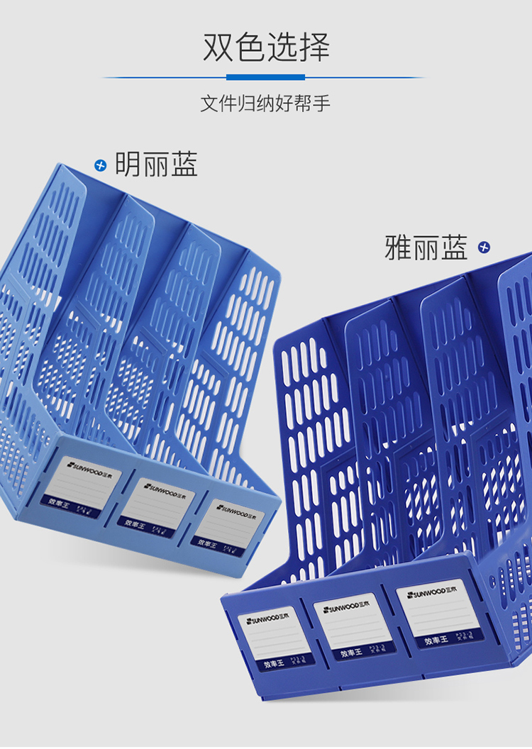 三木(SUNWOOD) P33-3 三联文件框带标签文件筐/资料框 牢固耐用 明丽蓝