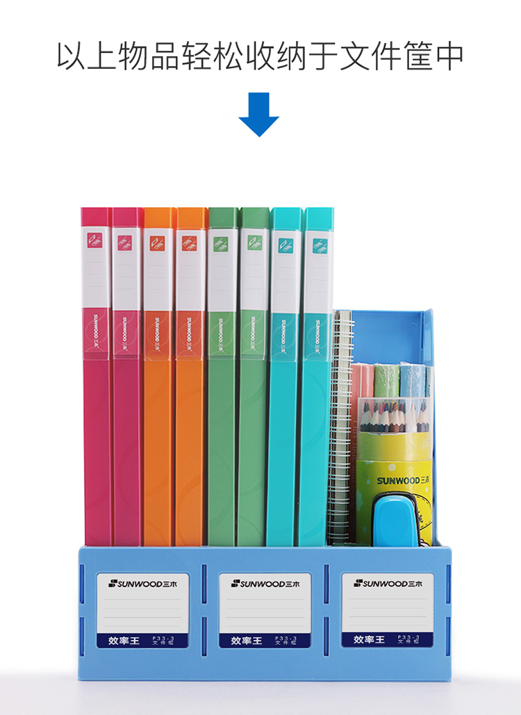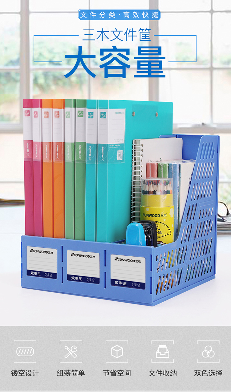 • 商品名称:三木(SUNWOOD) P33-3 三联文件框带标签文件筐/资料框 牢固耐用 明丽蓝