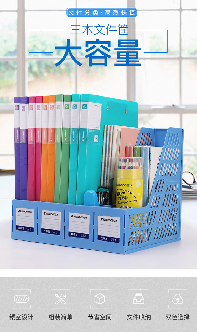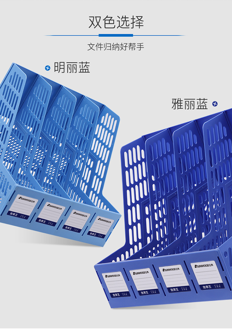• 商品名称:三木(SUNWOOD) P33-4 四联文件框带标签文件筐/资料框 牢固耐用 明丽蓝