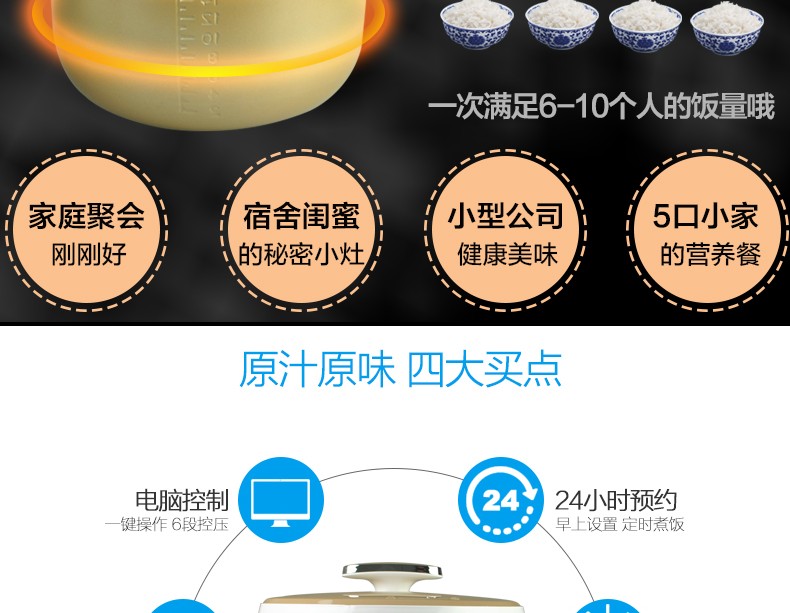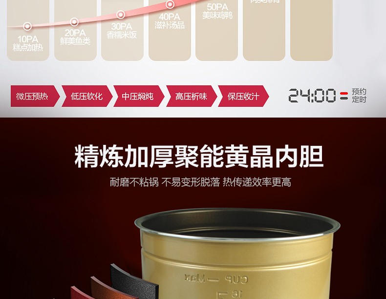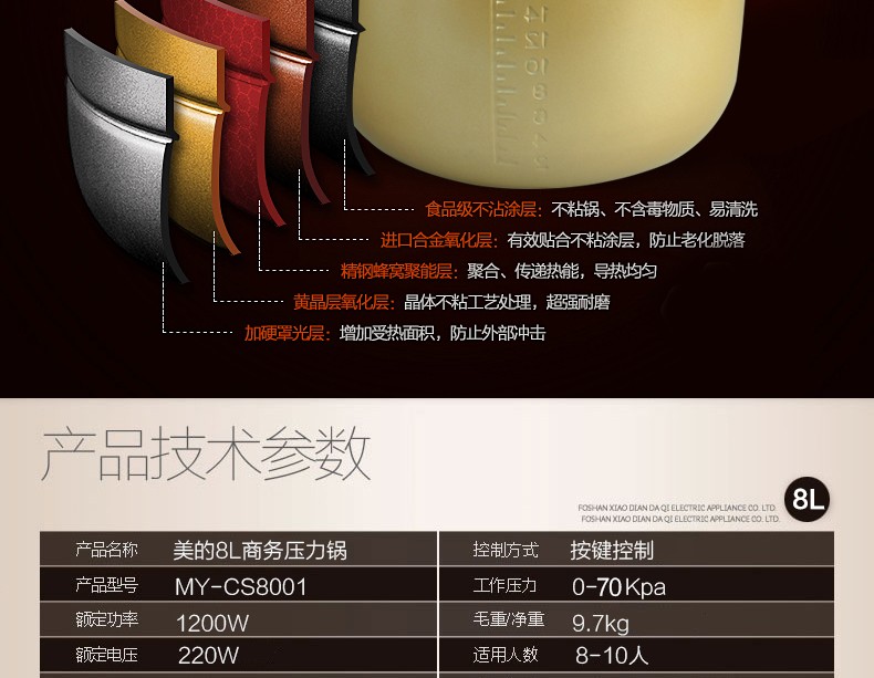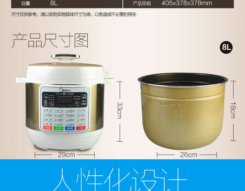• 商品名称:美的(Midea) PCS8001 电压力锅高压锅智能预约8L大容量多功能家用压力锅【8升】