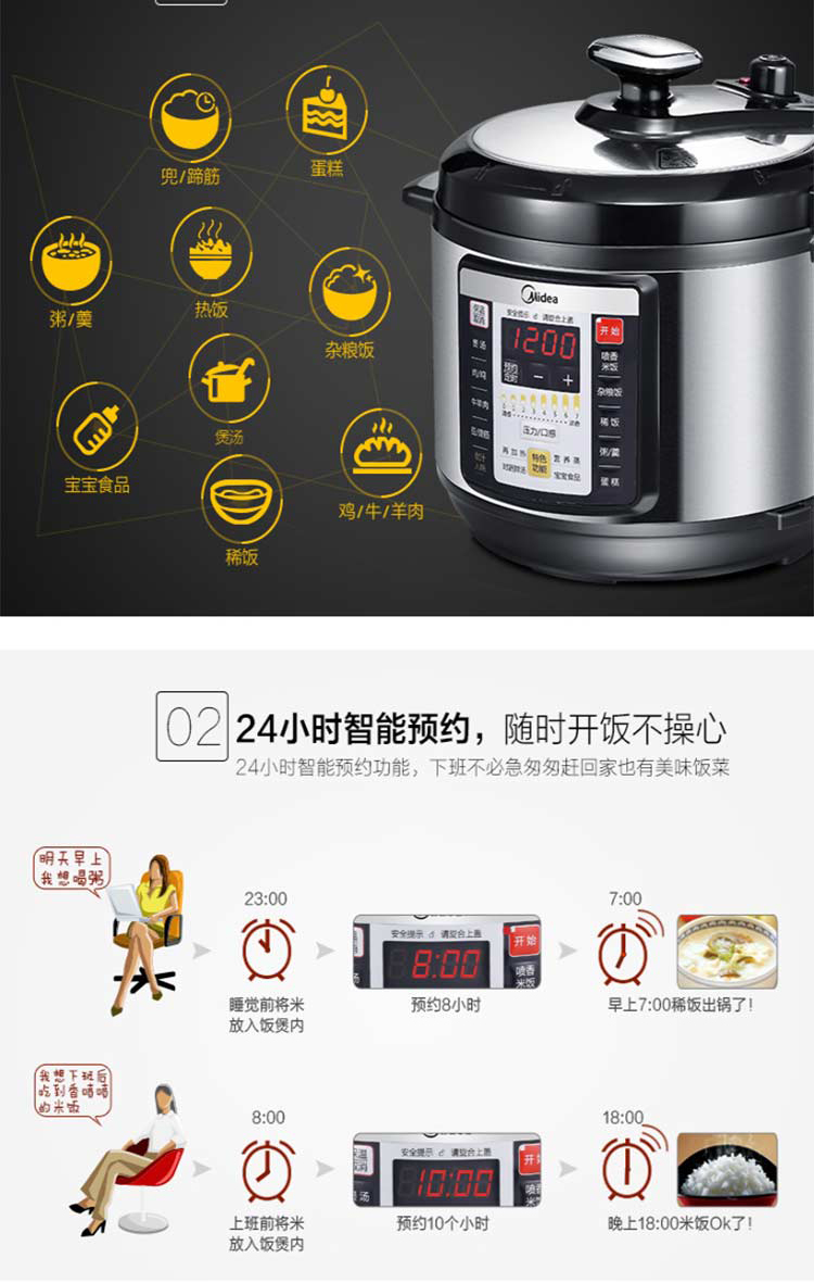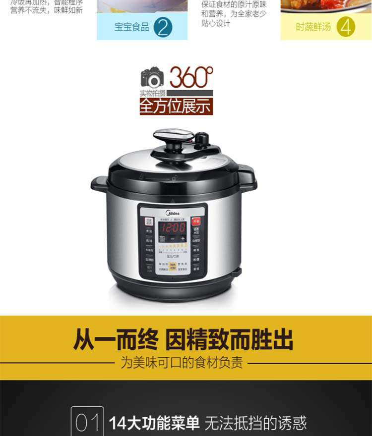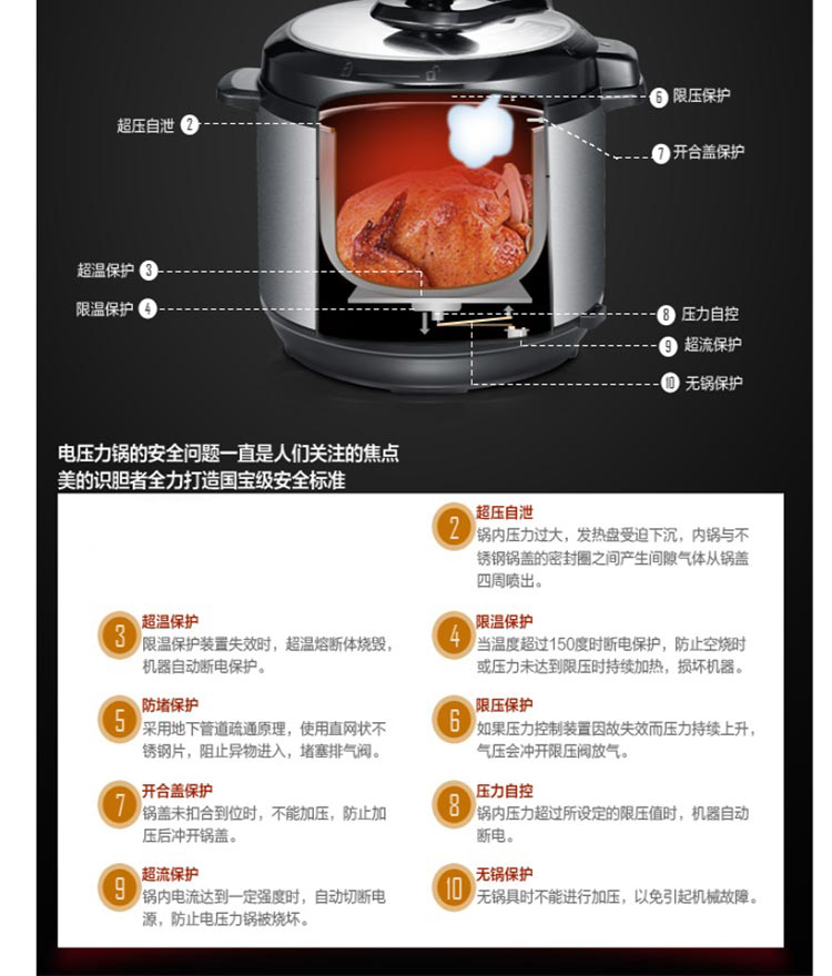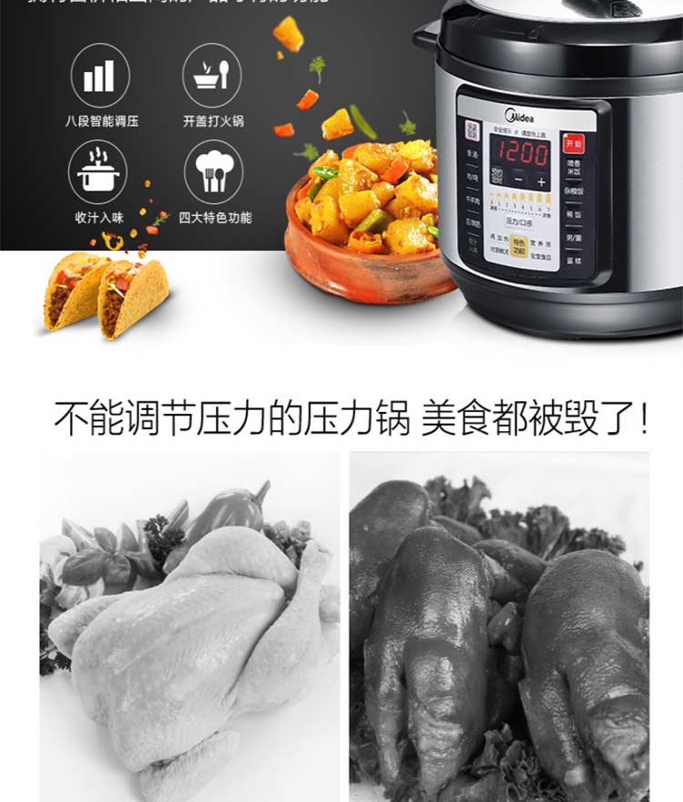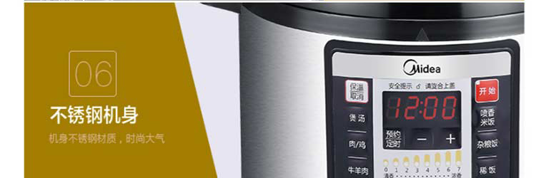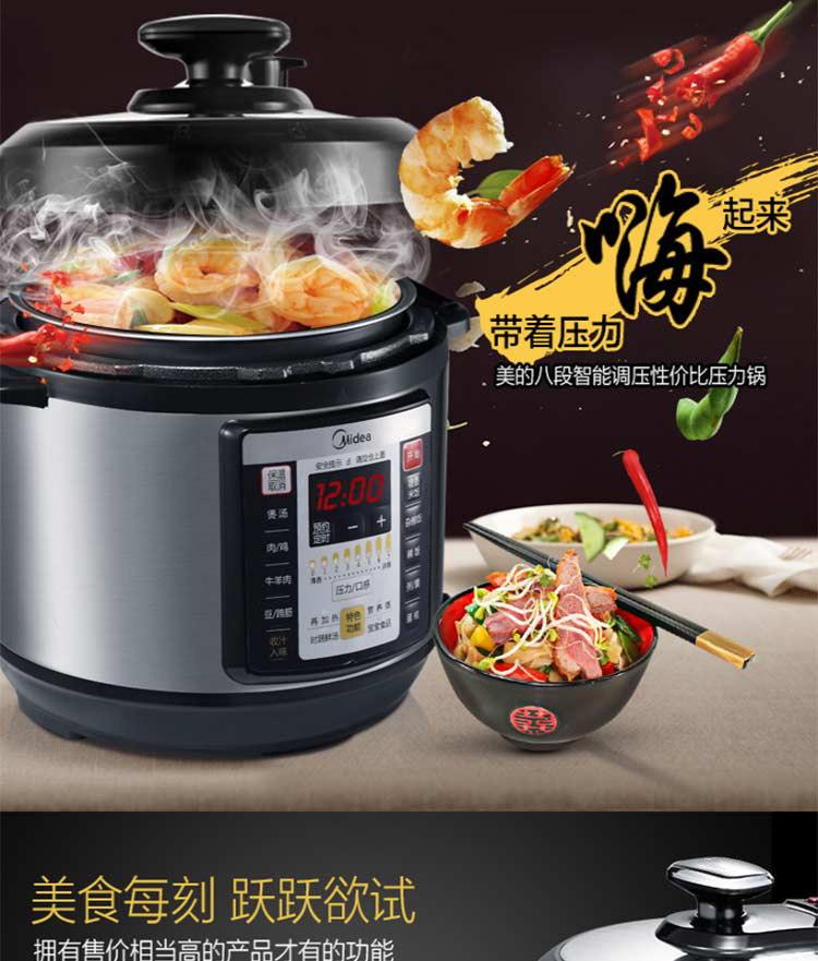 • 商品名称:美的(Midea) PCS6001P 电压力锅双胆 智能压力锅 6L 浅灰色