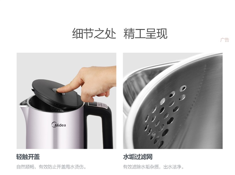 • 商品名称:美的(Midea) HE1504a 电水壶热水壶电热水壶304不锈钢水壶双层防烫全钢无缝烧水壶 1.5L