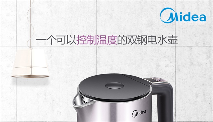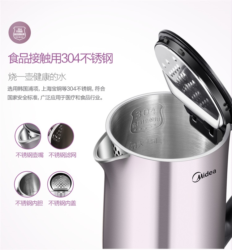 美的(Midea) HE1504a 电水壶热水壶电热水壶304不锈钢水壶双层防烫全钢无缝烧水壶 1.5L