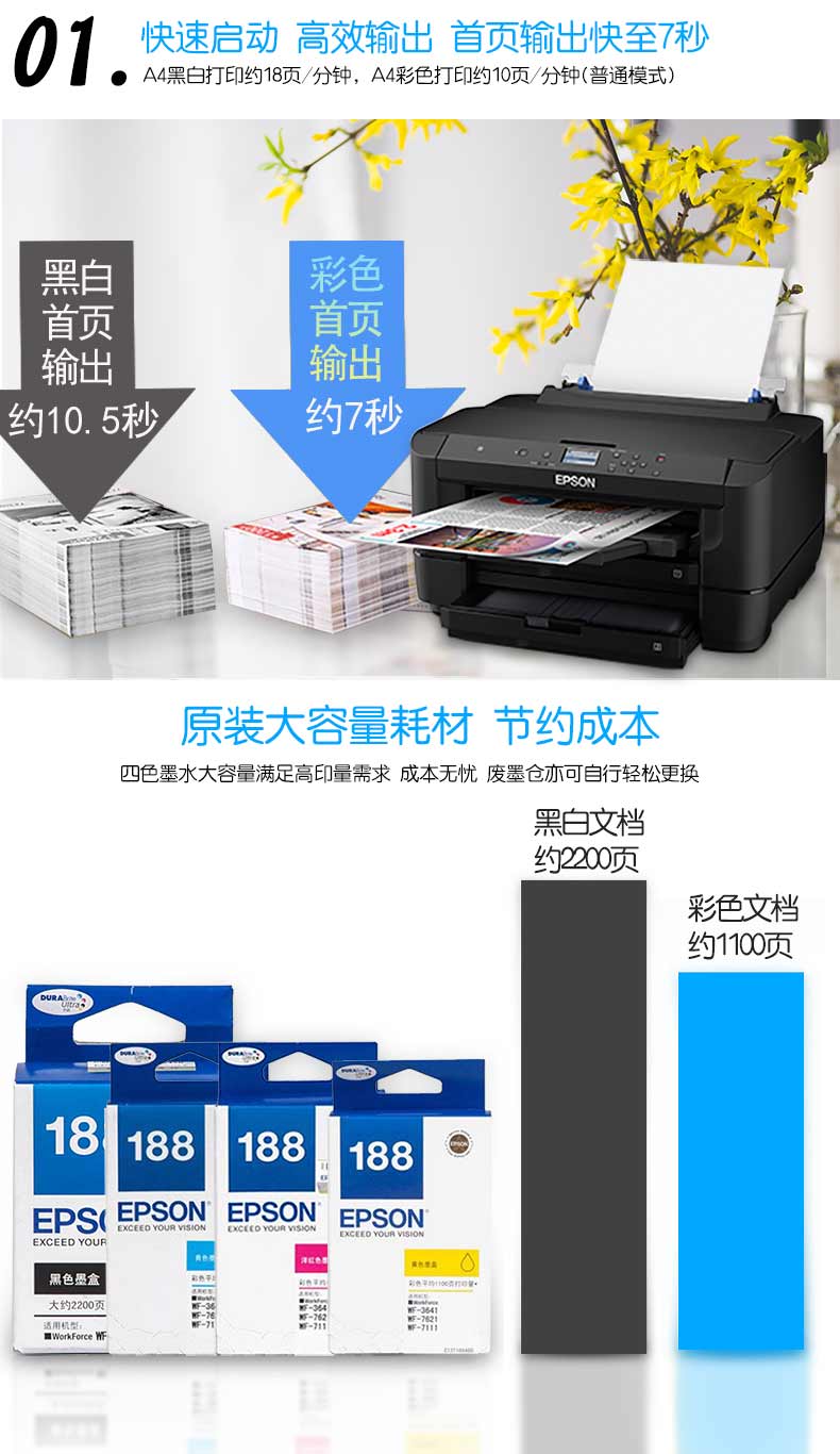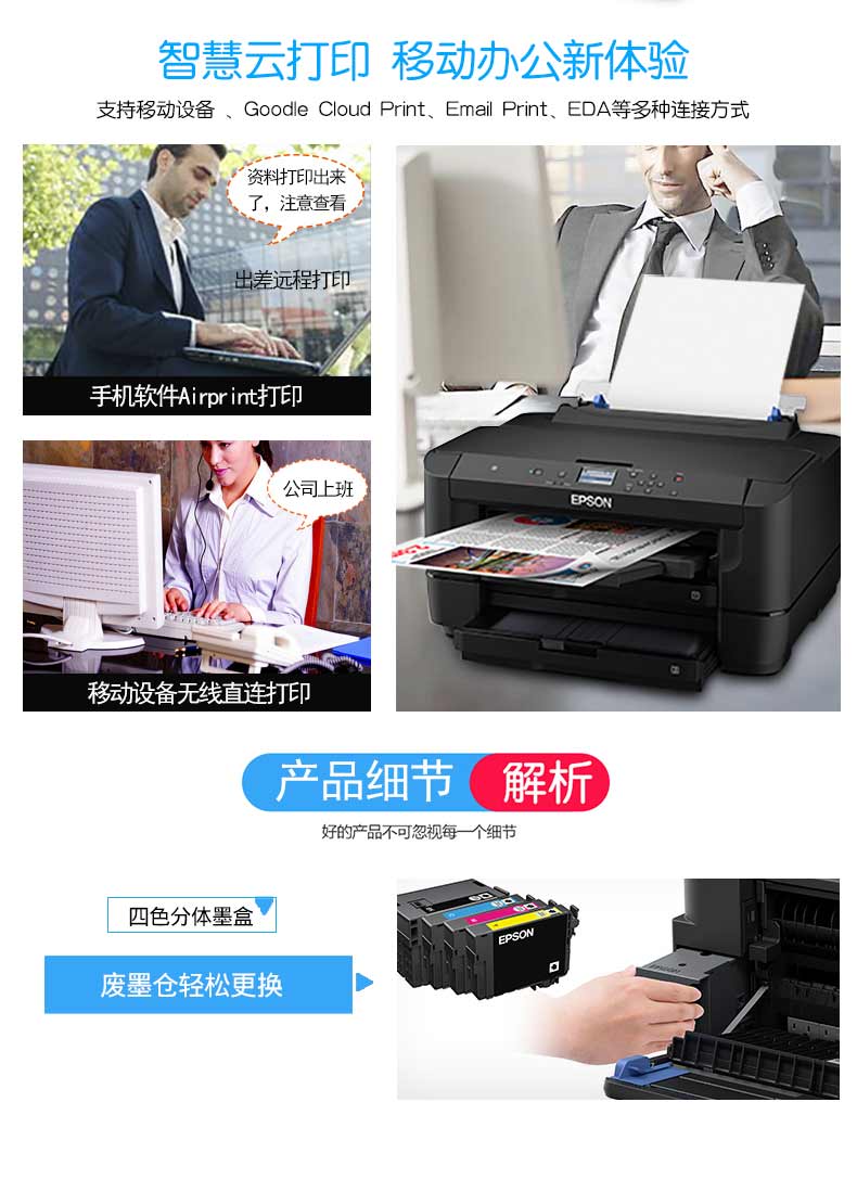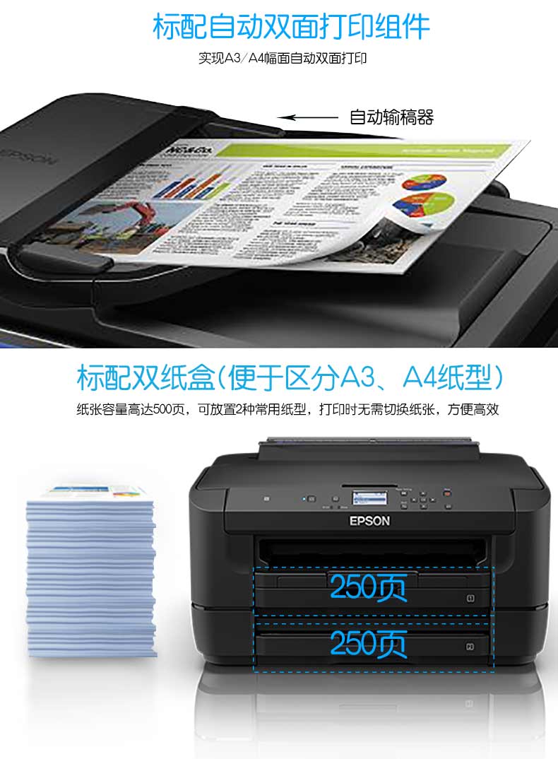 爱普生(EPSON) WF-7218 A3无线彩色喷墨商务打印机 大容量双纸盒 自动双面打印
