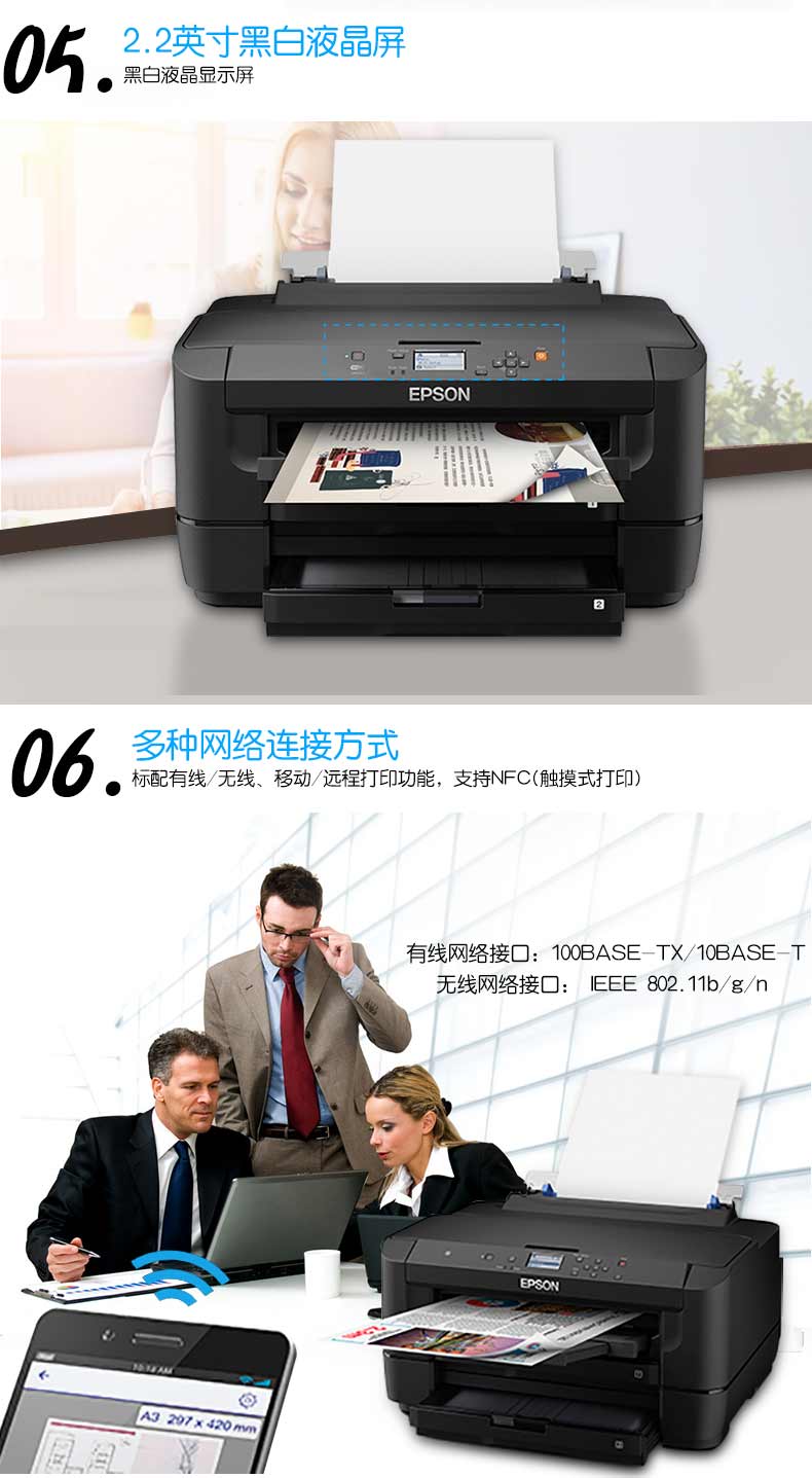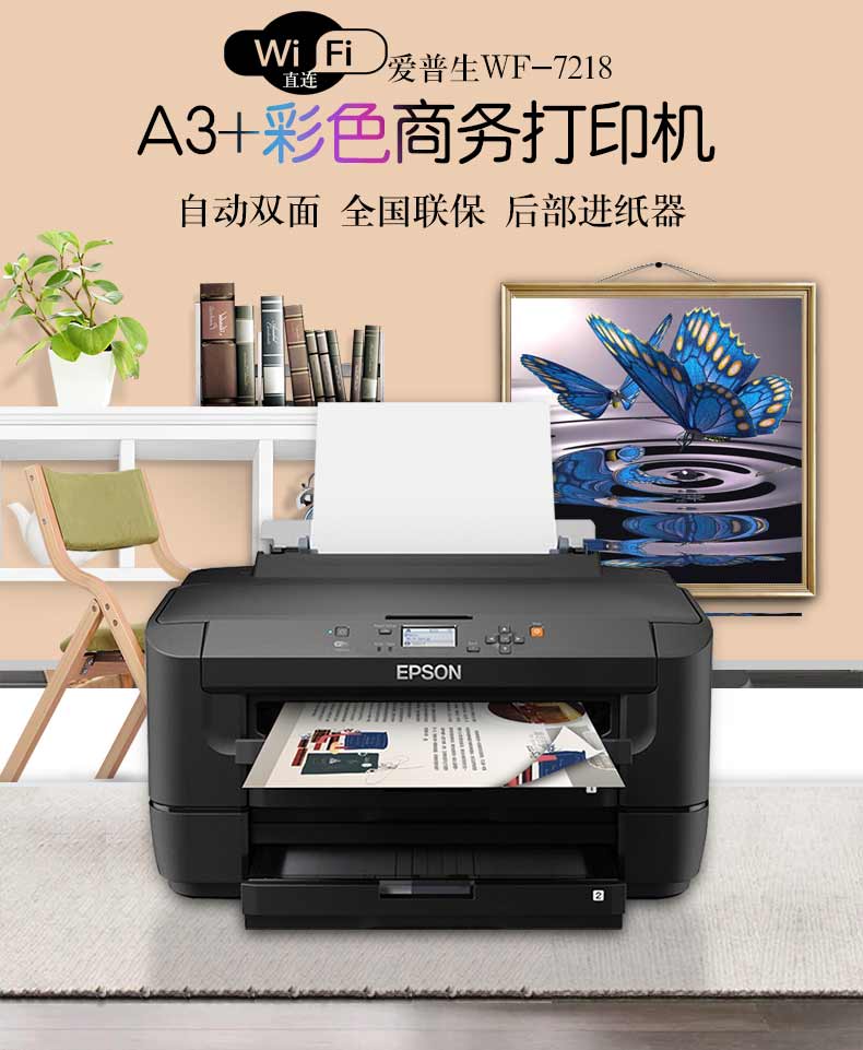 • 商品名称:爱普生(EPSON) WF-7218 A3无线彩色喷墨商务打印机 大容量双纸盒 自动双面打印