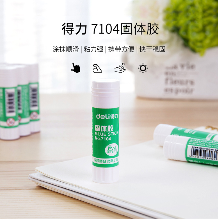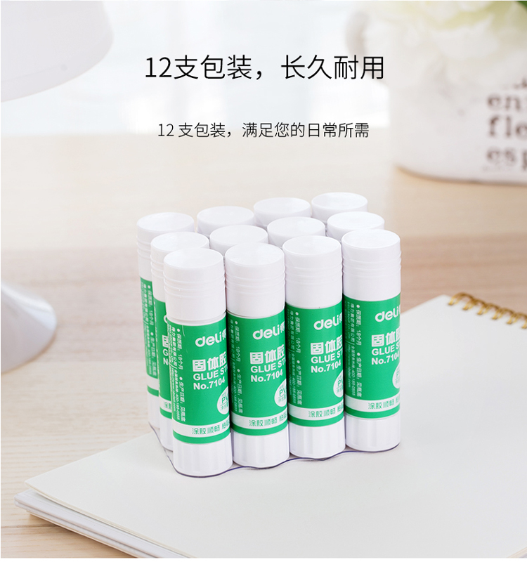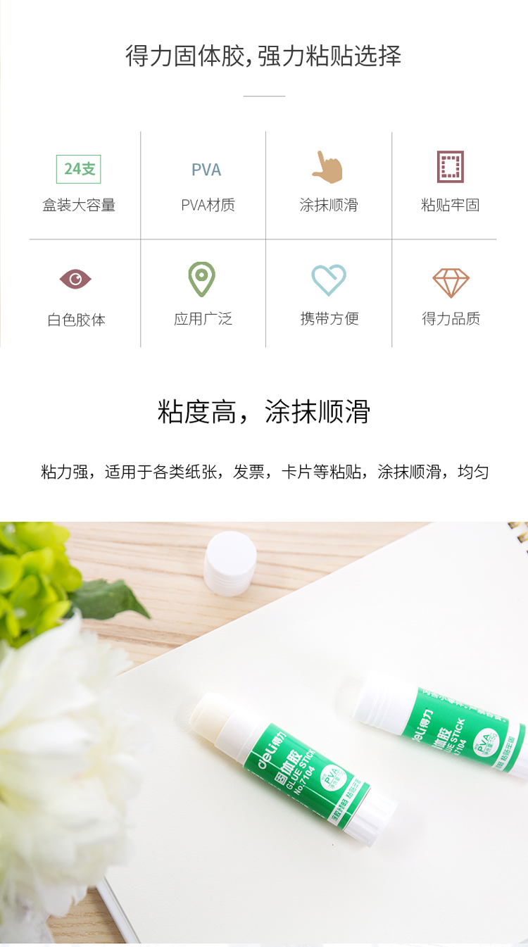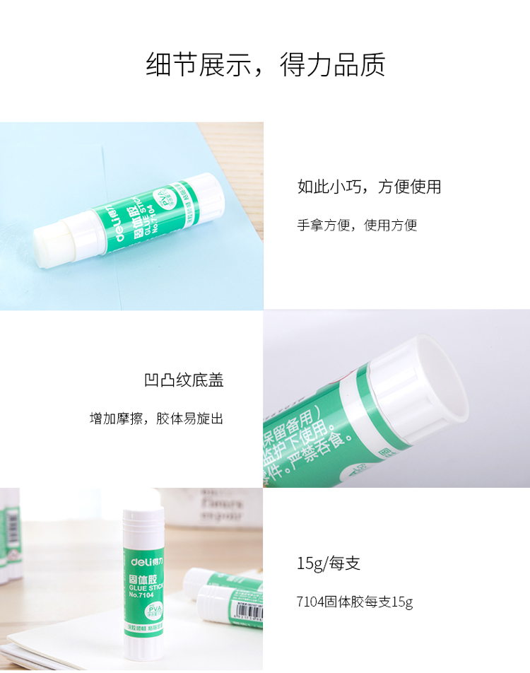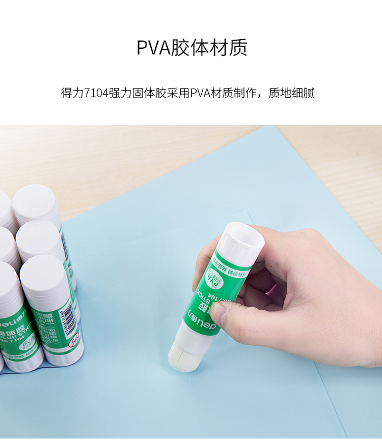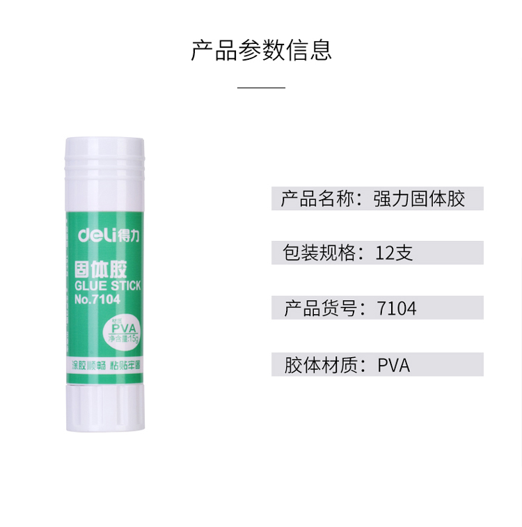 • 商品名称:得力(deli) 7104 PVA手工固体胶棒固体胶水15g12支/盒