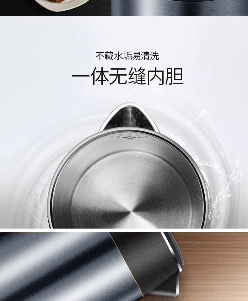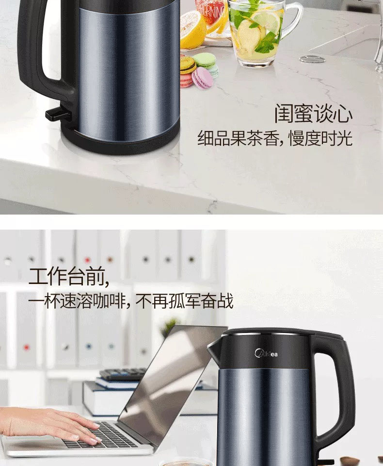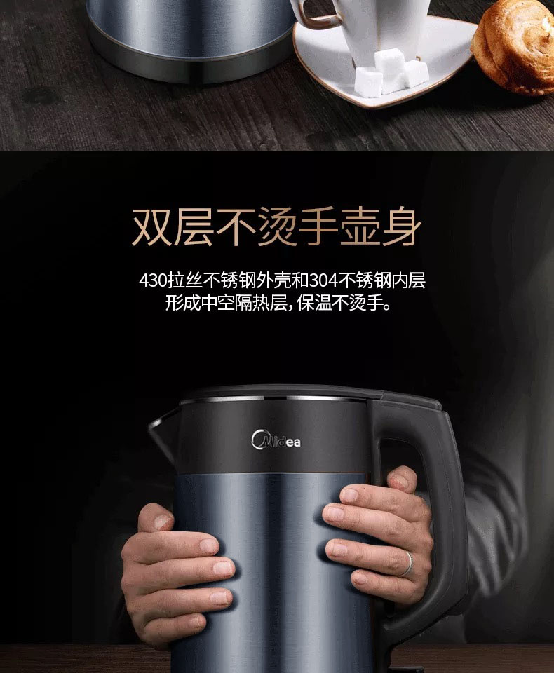 美的(Midea)HJ1511a 电水壶 热水壶 电热水壶烧水壶304不锈钢一体无缝 1.5L