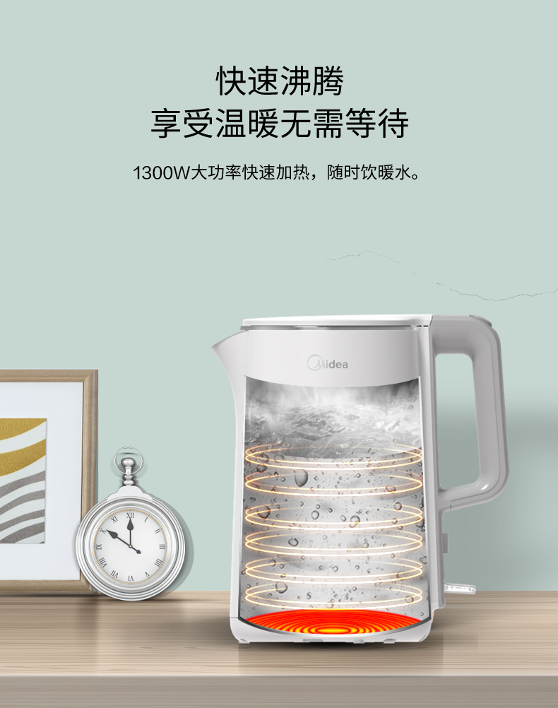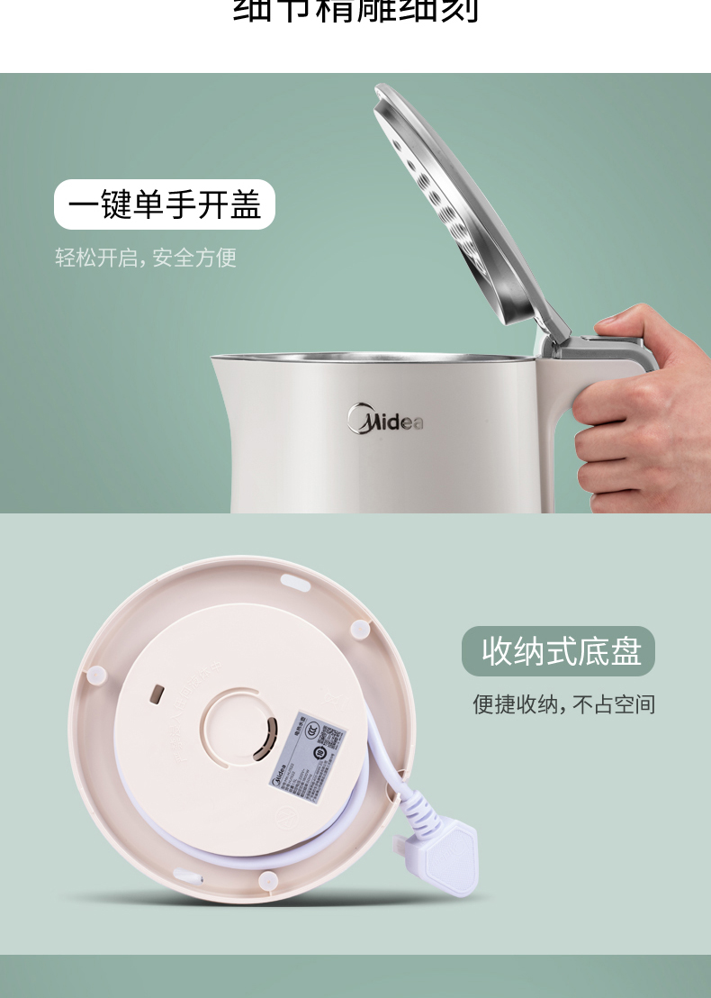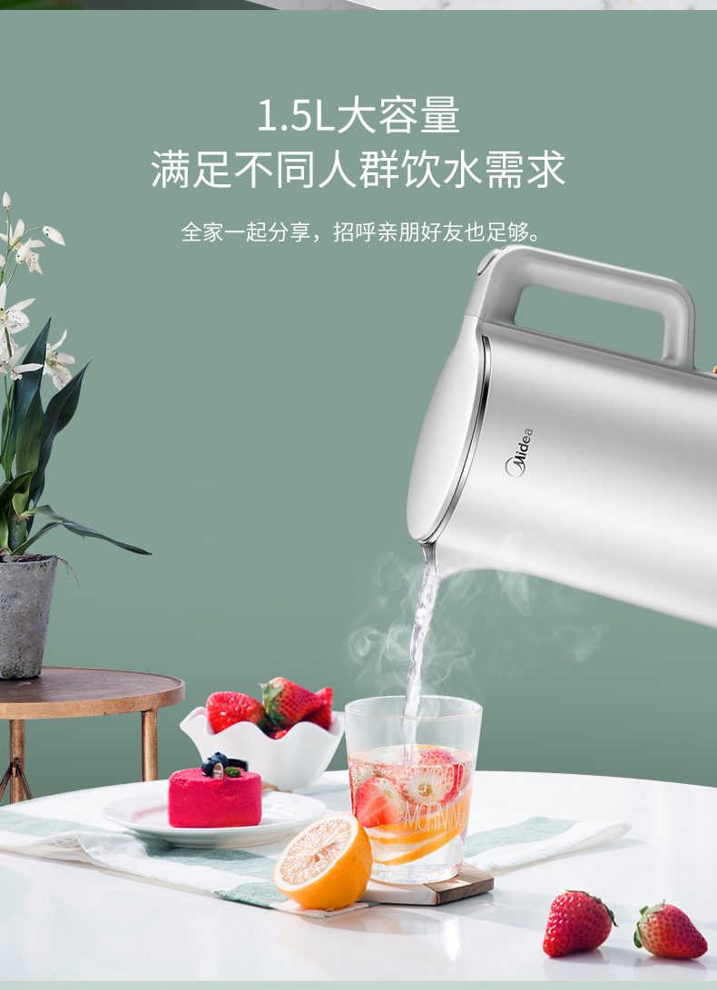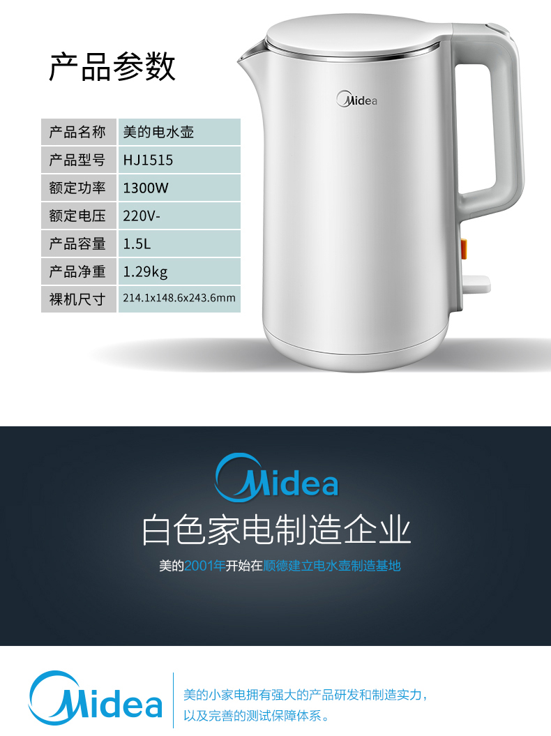 • 商品名称:美的(Midea) HJ1515a 热水壶烧水壶电水壶304不锈钢电热水壶 1.5L