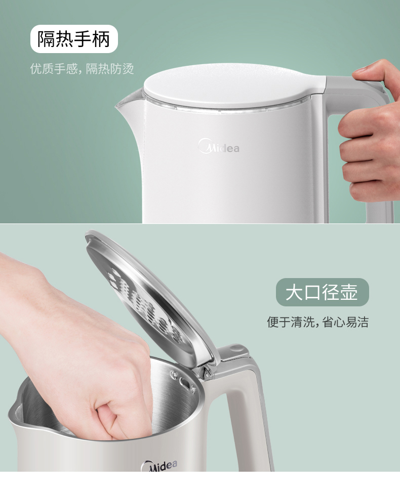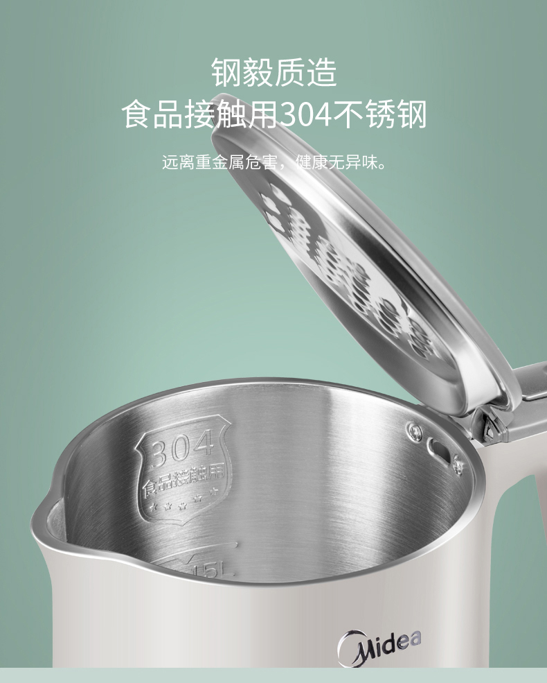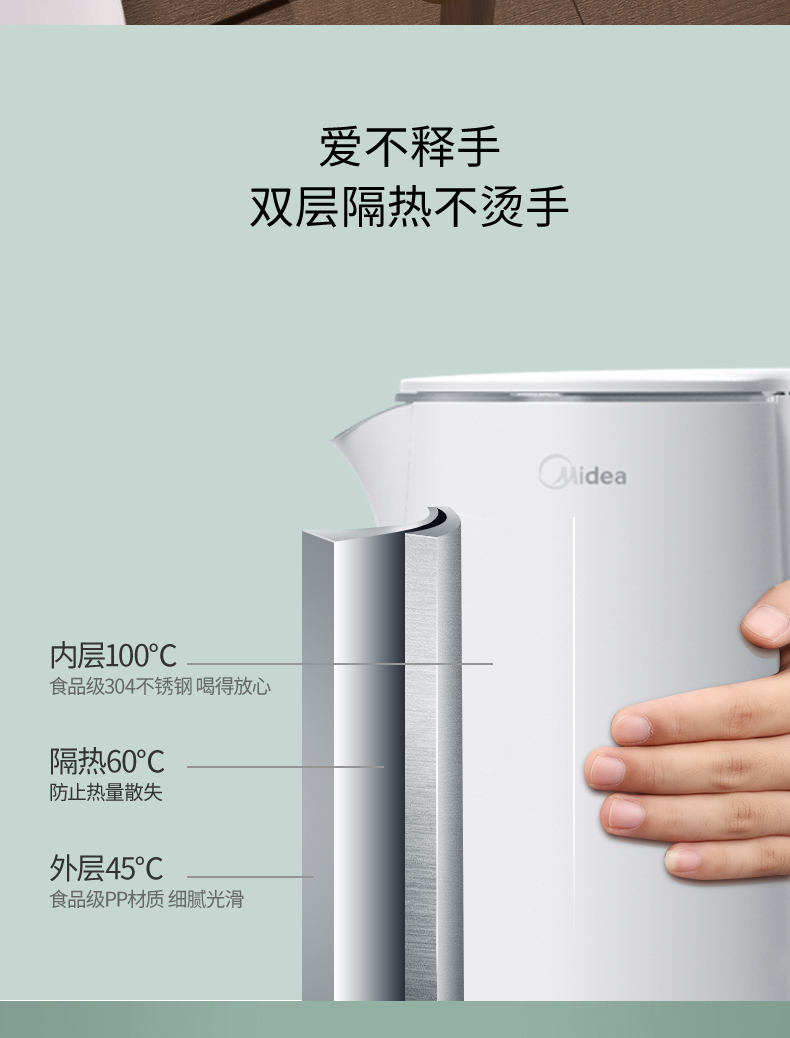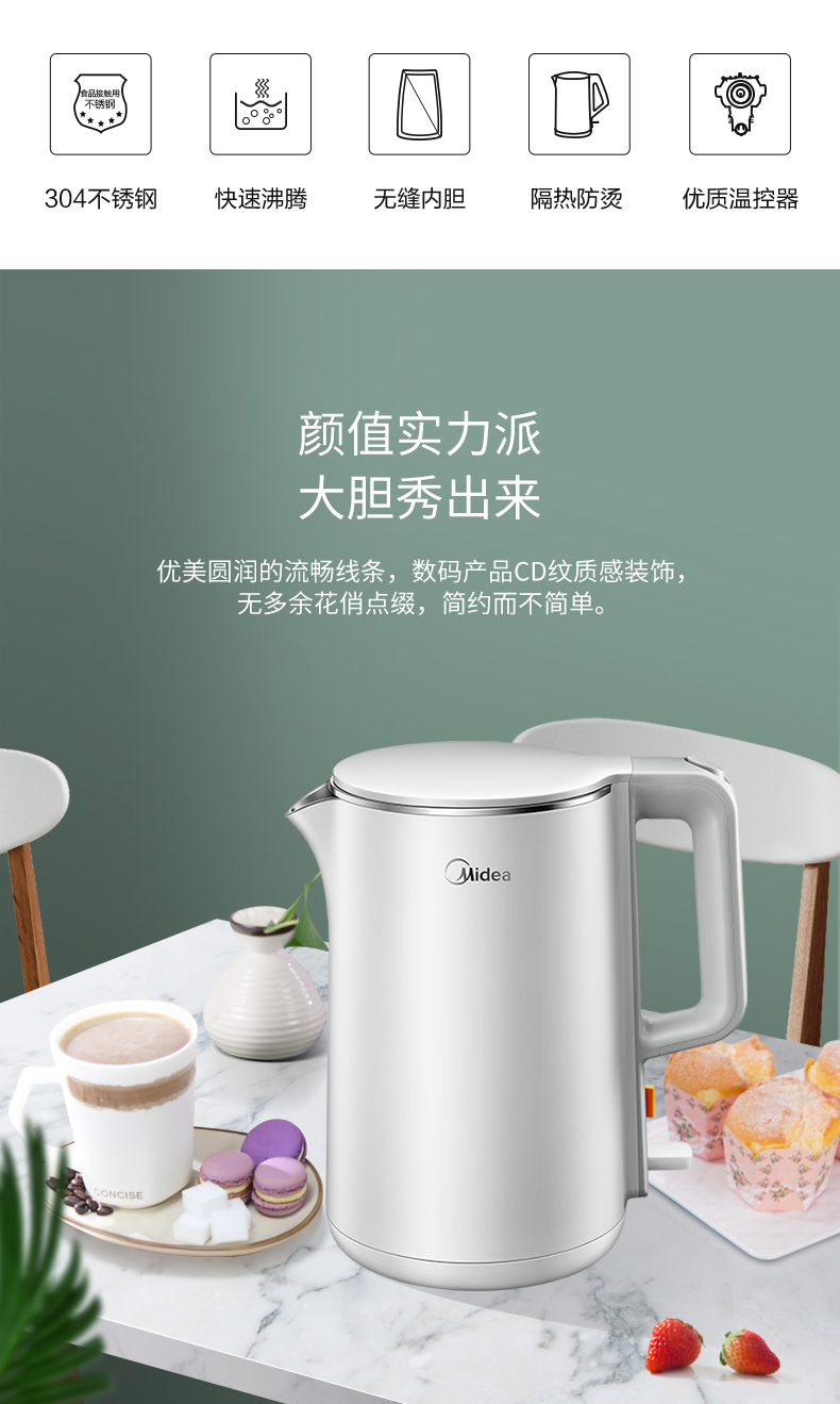 美的(Midea) HJ1515a 热水壶烧水壶电水壶304不锈钢电热水壶 1.5L